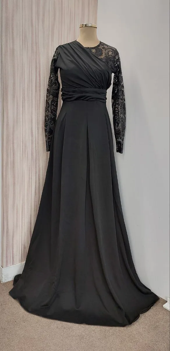 سادگی رنگ مشکی، اوج وقار: رنگ مشکی یکدست این لباس، آن را به یک بوم نقاشی بینقص تبدیل کرده است. این سادگی، به بافتها و برشهای لباس اجازه میدهد تا خودنمایی کنند. مشکی، رنگ قدرت، ظرافت ابدی و انتخابی است که هرگز از مد نمیافتد و اندام شما را کشیدهتر نشان میدهد.