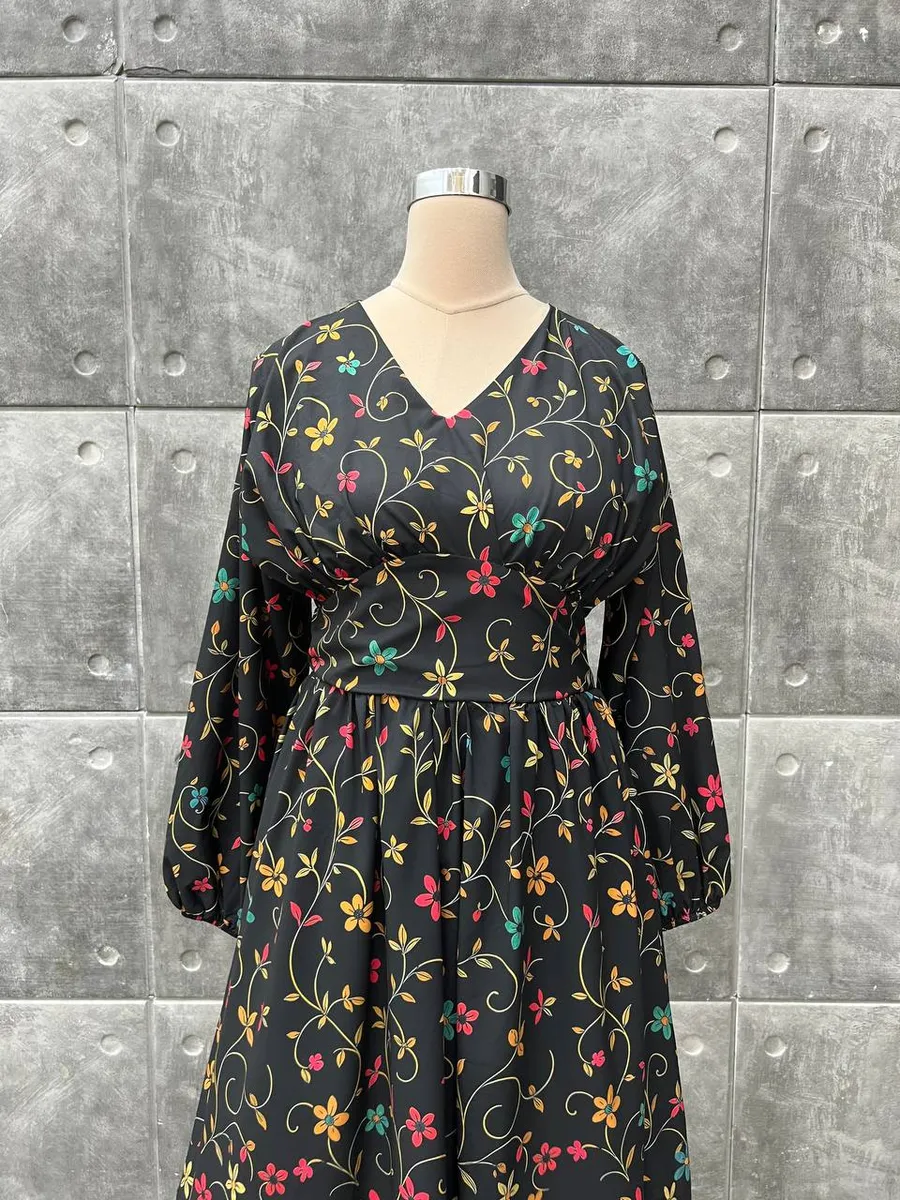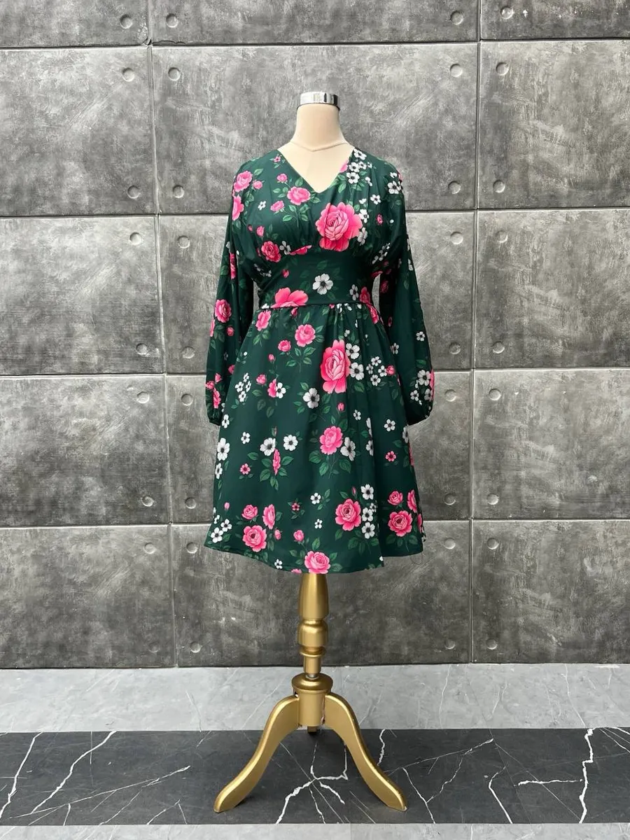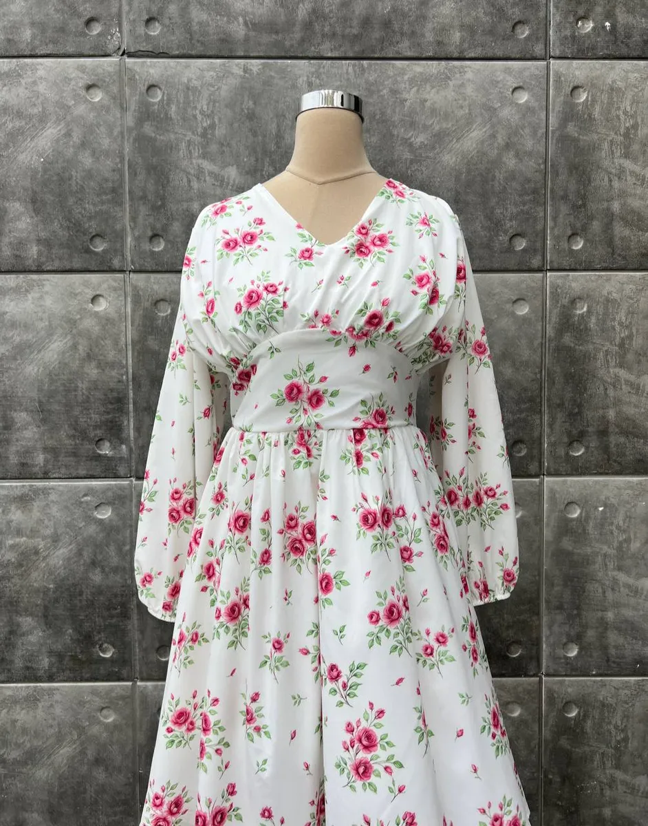 پارچهای به لطافت نوازش: جنس این پیراهن از “سوپر سافت کرهای چاپی” است. همانطور که از نامش پیداست، این پارچه فوقالعاده نرم، سبک و لطیف است و حس بسیار خوشایندی روی پوست دارد. ریزش زیبای پارچه باعث میشود دامن لباس حالتی چیندار و عروسکی پیدا کند و با هر حرکت شما، به زیبایی تکان بخورد.
