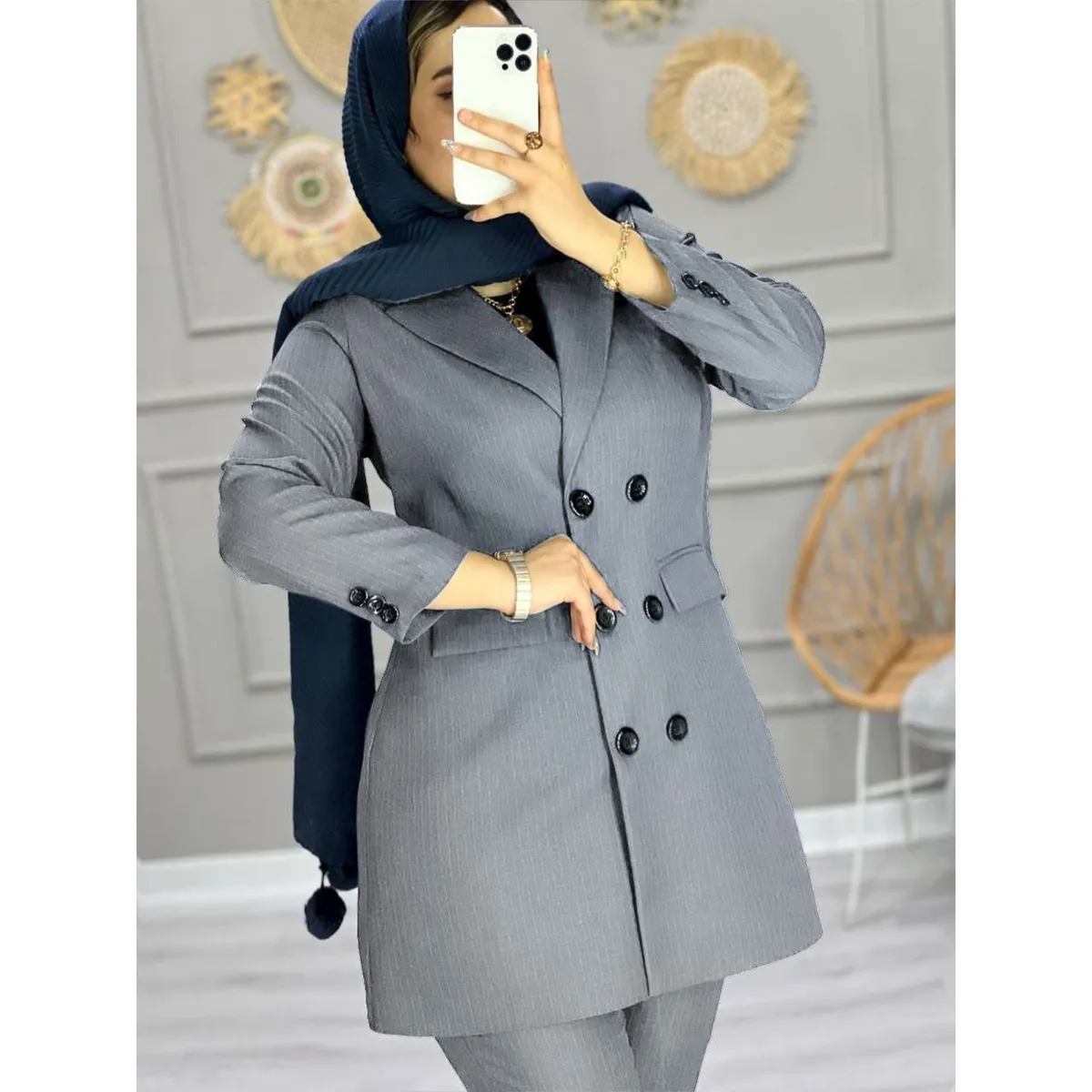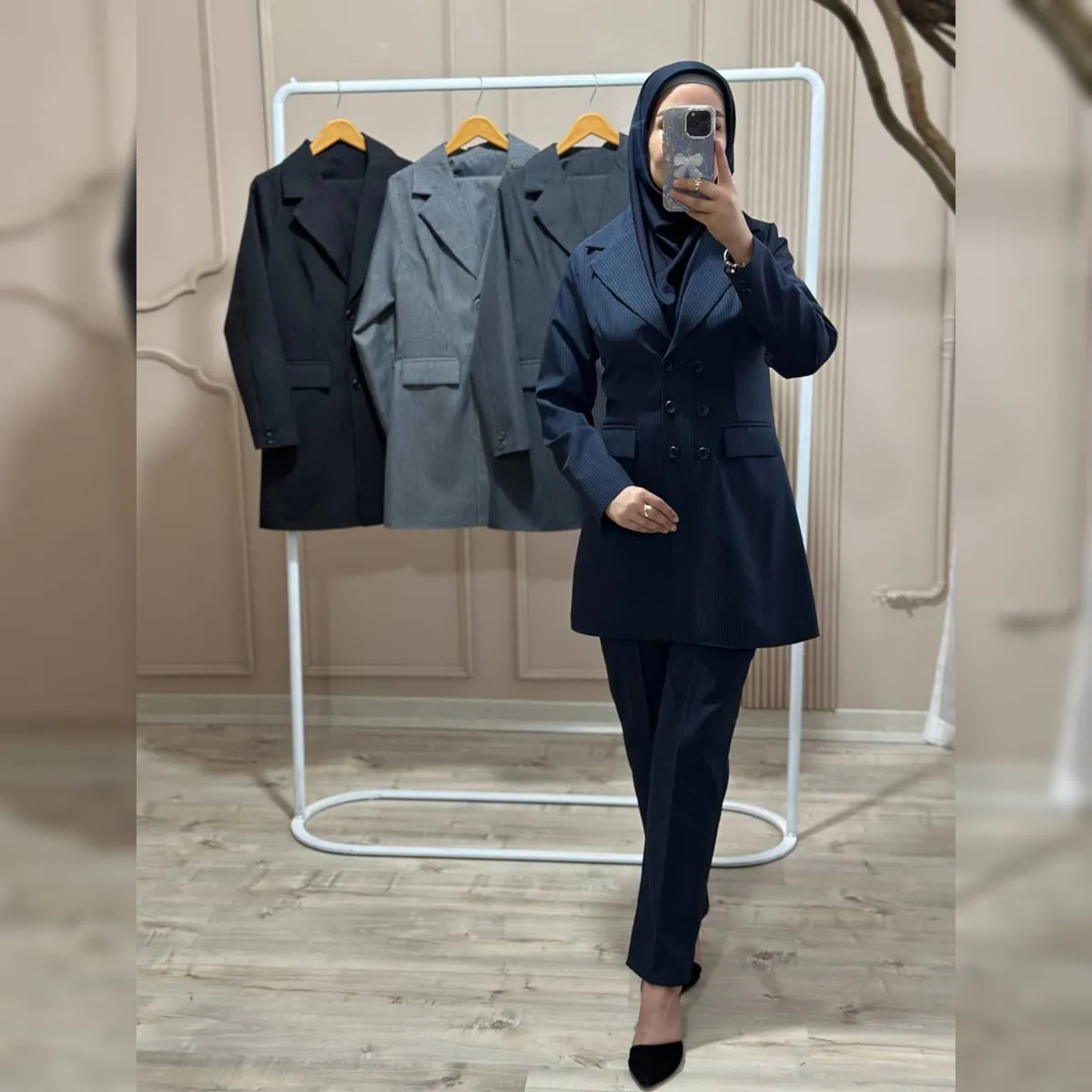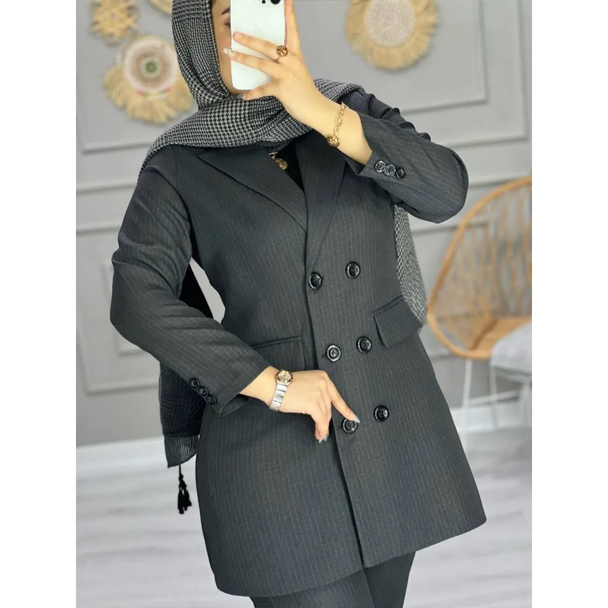 رنگبندی کلاسیک و رسمی این ست شامل سرمهای، طوسی، مشکی و نوکمدادی است که بهراحتی با روسری، کیف و کفش رسمی ست میشوند. سایزبندی کامل از 38 تا 52، آن را مناسب برای انواع فرم بدن کرده و اندازهها با دقت طراحی شدهاند تا شما درعین وقار، راحتی را نیز تجربه کنید.