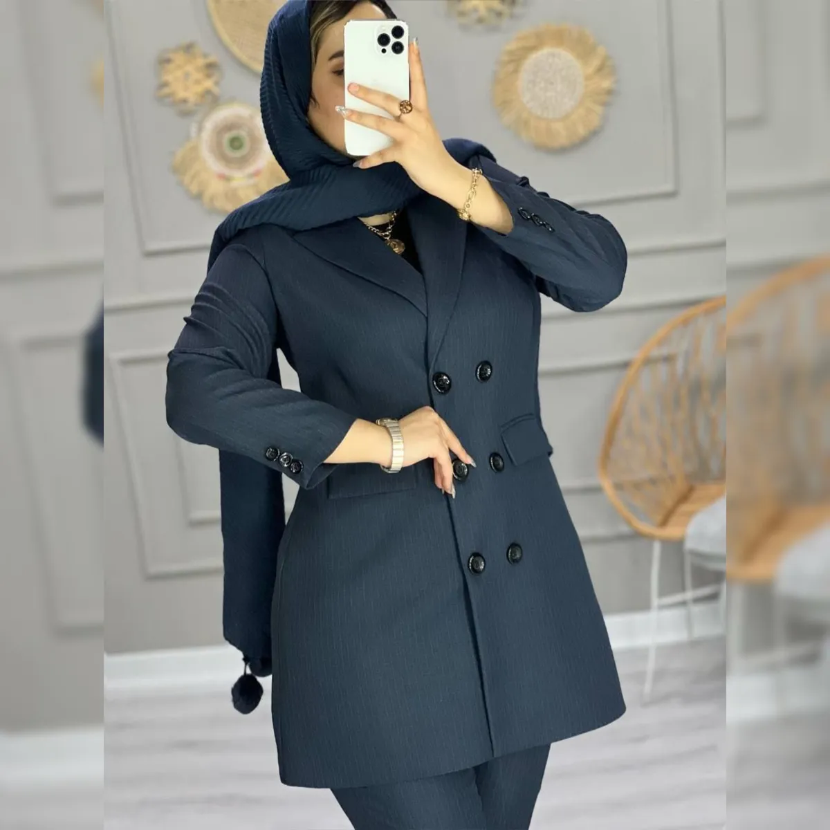 ست اداری پریا انتخابی ایدهآل برای بانوانی است که به ظاهر رسمی، مرتب و درعینحال راحت اهمیت میدهند. این ست از پارچه پرشیا دیپلمات باکیفیت بالا دوخته شده و بافت مقاوم و ایست عالی آن باعث میشود برای استفادهی روزمره در محیط کار یا جلسات رسمی کاملاً مناسب باشد.