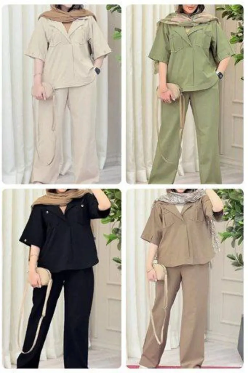 پارچهی کتان کش این ست علاوه بر جذابیت ظاهری، کیفیت و دوام عالی دارد و مناسب استفاده روزانه و نیمهرسمی است. رنگبندی متنوع و خنثی شامل صدری، کرم، مشکی، موکا، نسکافهای و یشمی باعث میشود برای هر فصل و سلیقهای گزینهای مناسب وجود داشته باشد.