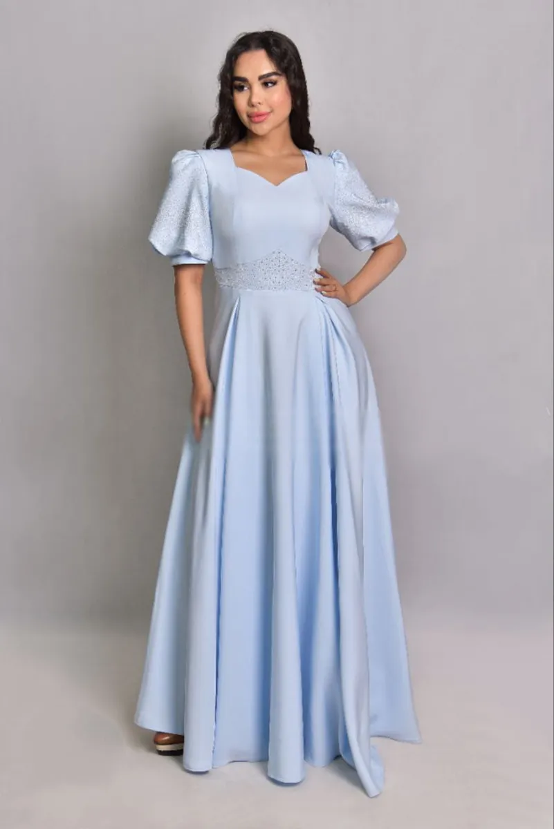 آستین کوتاه و طراحی مینیمال آن باعث شده تا برای مراسم مختلف مانند جشن، نامزادی یا مهمانیهای رسمی انتخابی ایدهآل باشد. دوخت ظریف مزونی، برش تمیز در خط کمر و فرم دامن حجمی متناسب، جذابیت و خوشفرمی لباس را دوچندان کرده است.