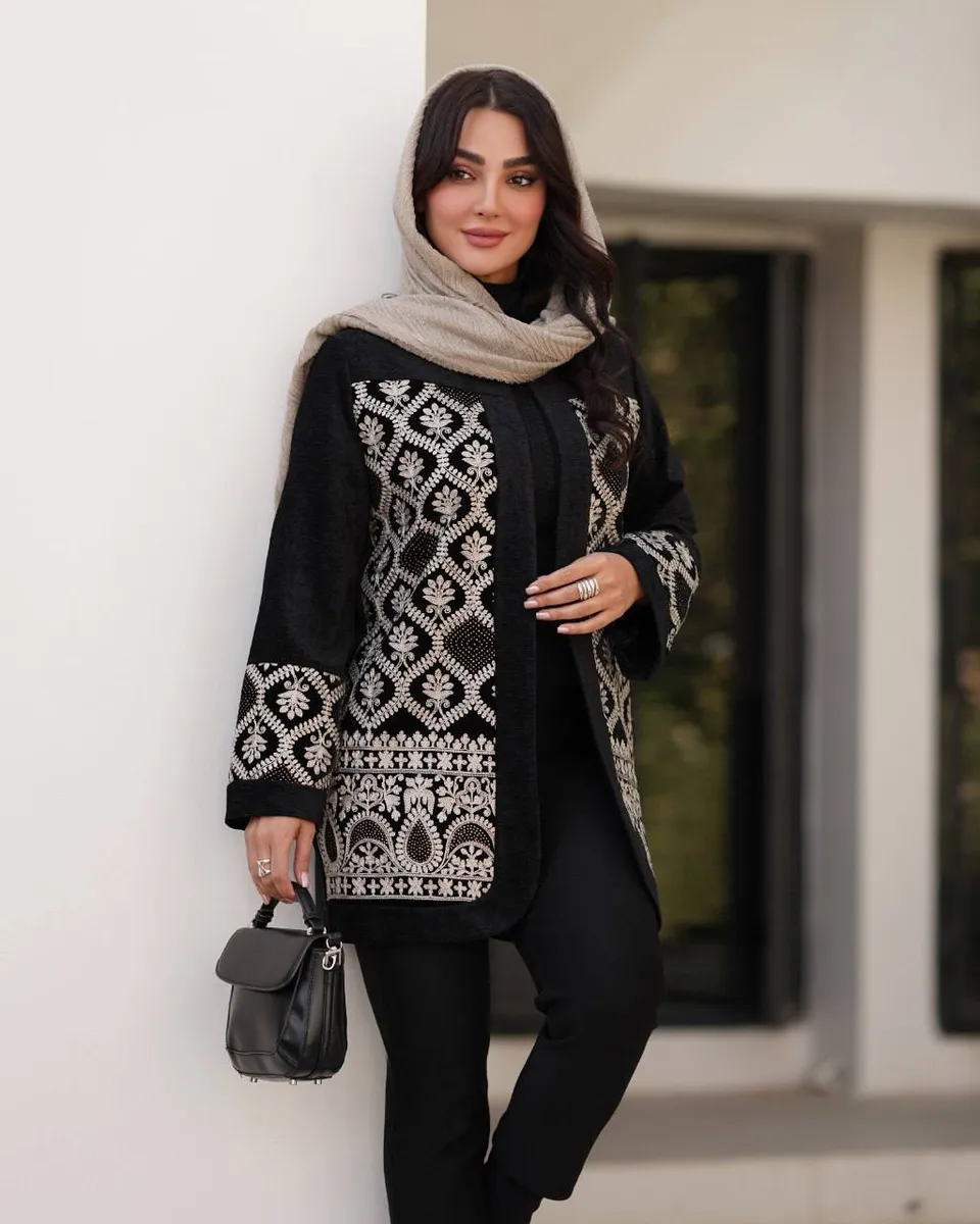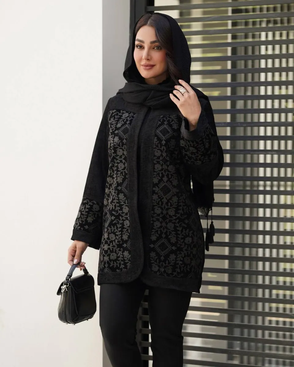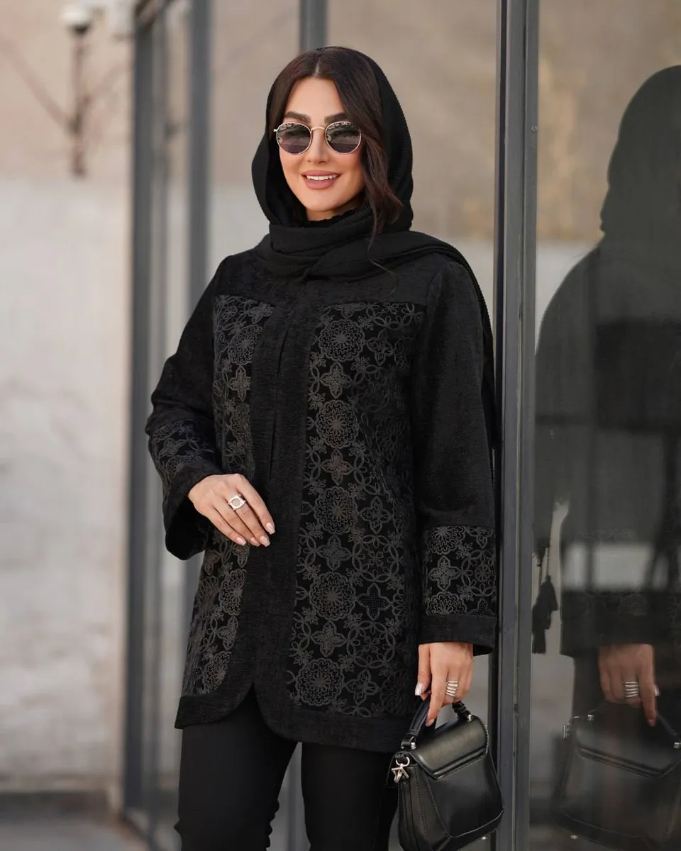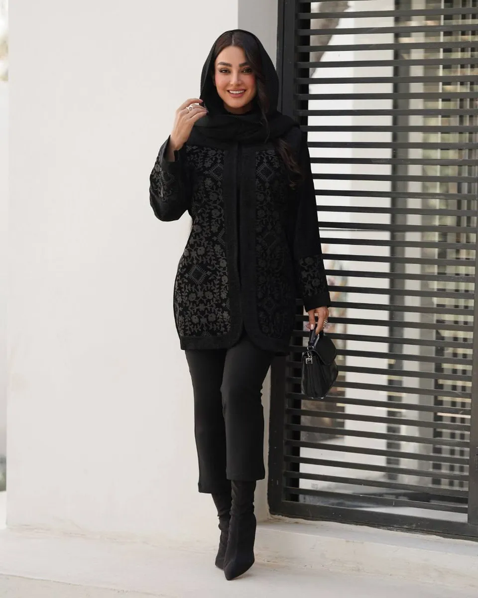 🧵جنس پارچه :مخمل شانل جت بلک +خرجکار هندی پیش کار لایی پرشین خورده