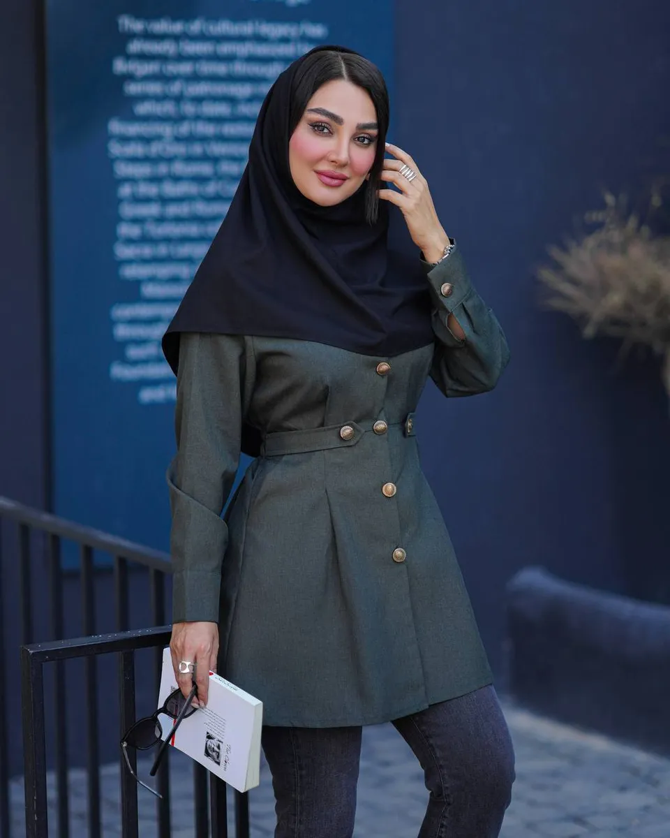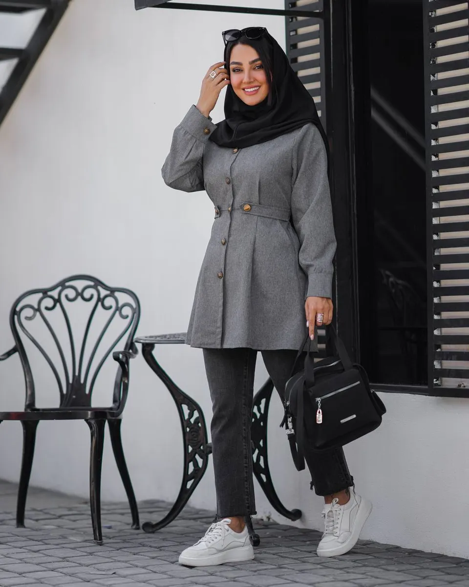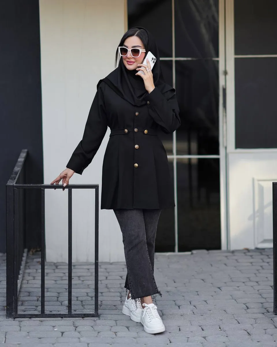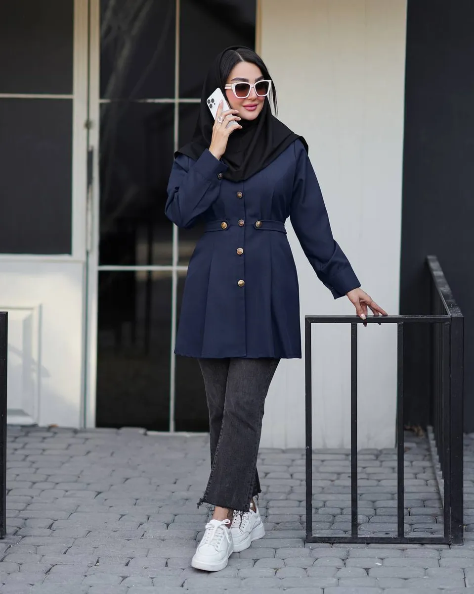 🔶مانتو کوتاه یقه مردونه - آستین مچی