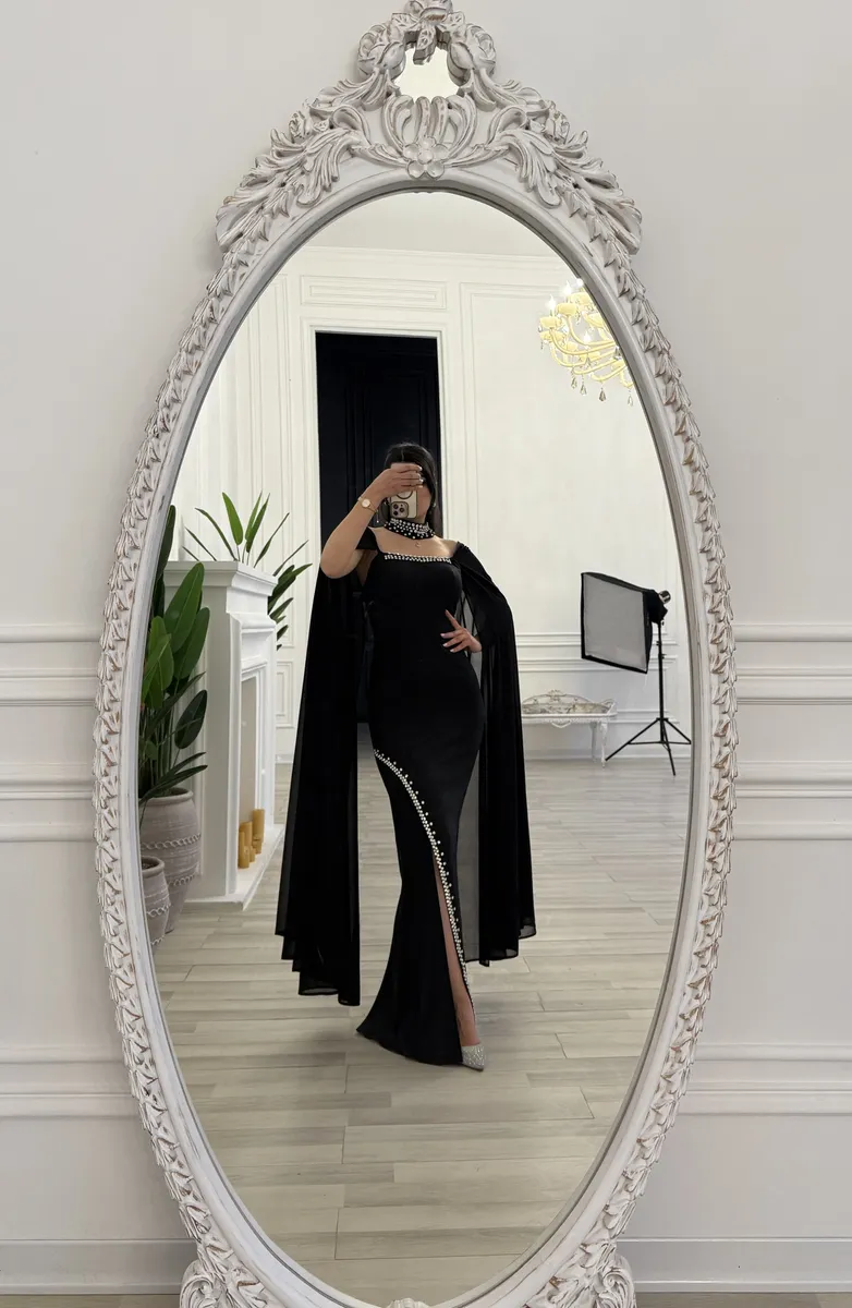 شال حریر باکلاس: شال بلند حریر با کیفیت بالا، امکان استایلهای مختلف را فراهم کرده و حس رویایی و رسمی به لباس میبخشد.