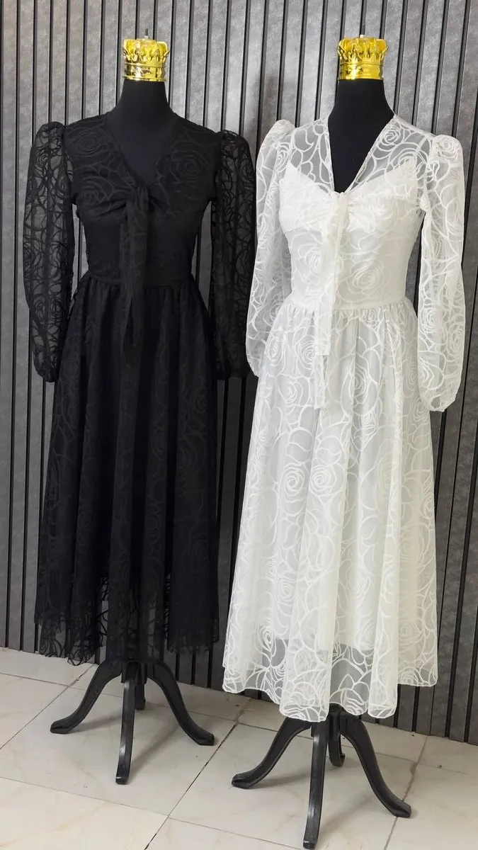 طراحی این مدل مخصوص مراسم عقد، نامزدی، تولد و مهمانیهای رسمی بوده و با برش دقیق و تنخور اندامی، استایلی خاص و زنانه را به نمایش میگذارد. رنگهای مشکی و سفید، گزینههایی کلاسیک و پرطرفدار در مراسم تشریفاتی هستند.