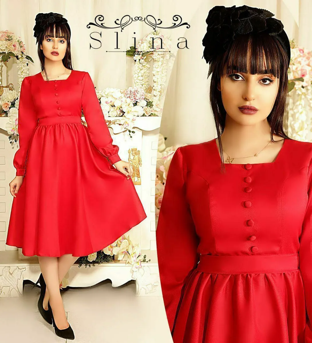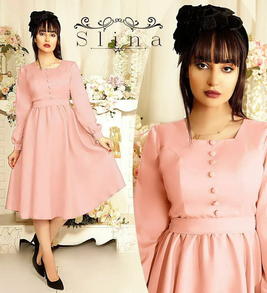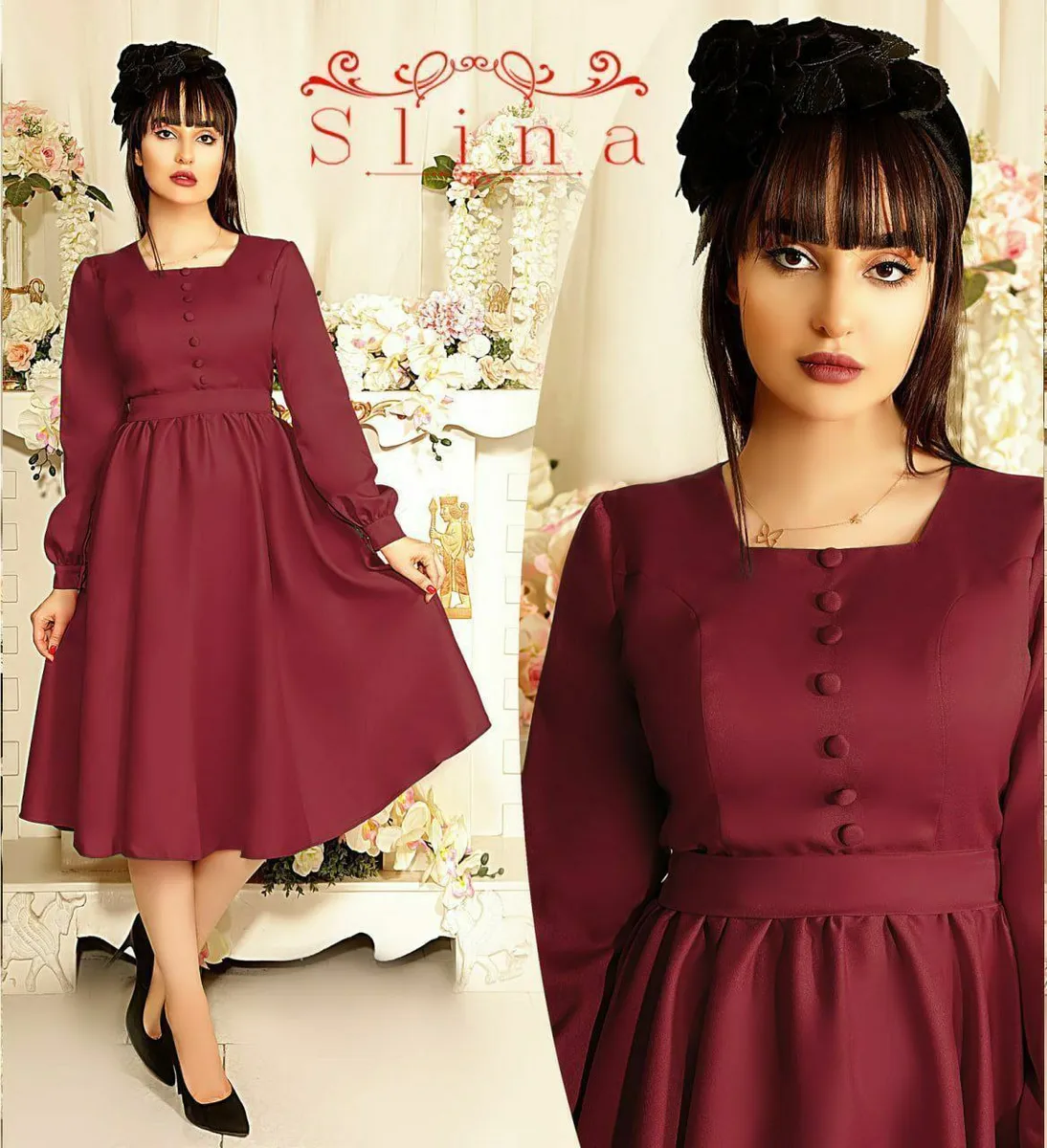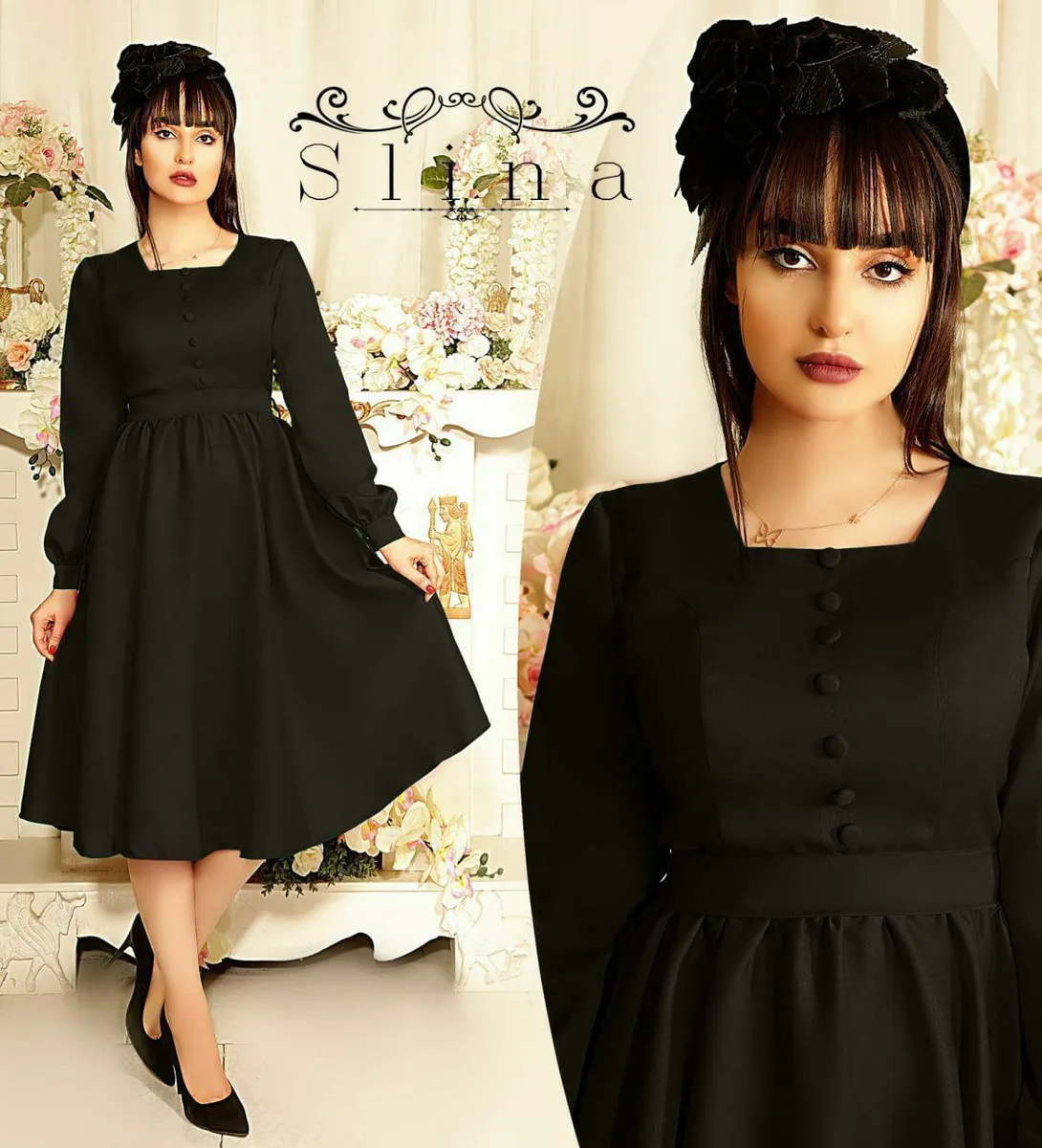 جنس لباس از کرپ اسکاچی باکیفیت است؛ پارچهای لطیف، خوشدوخت و بدون چروک که در عین سبکی، خوشفرم و خوشتن مینشیند. طراحی یقه مربعی و آستینهای بلند با مچ دکمهای جلوهای کلاسیک و شیک به مدل بخشیده و باعث میشود برای مراسم تولد، نامزدی، عقد محضری یا مهمانیهای رسمی انتخابی خاص باشد.