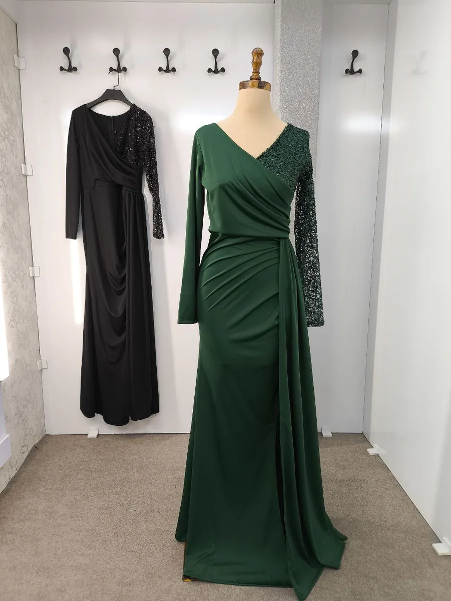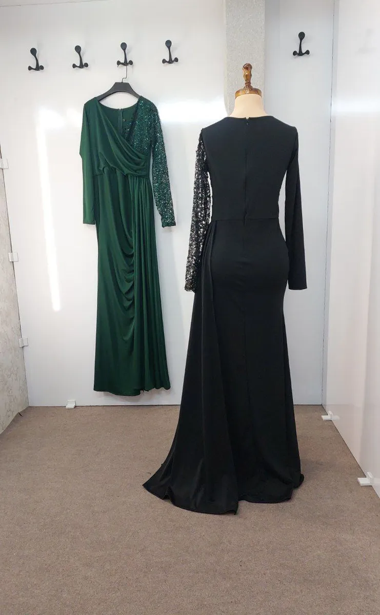 این مدل با قد 155 سانتیمتر و چاک 55 سانتیمتری طراحی شده تا تعادل زیبایی بین پوشیدگی و جذابیت ایجاد کند. داشتن زیپ پشتی مخفی برای پوشیدن آسان و ایست سازگار با فرم بدن، همراه با آستینهای بلند و طراحی پوشیده باعث میشود ساناز انتخابی عالی برای مراسم رسمی، نامزدی یا مهمانیهای شب باشد. رنگ سبز تیرهی خاص آن، جلوهای متفاوت و چشمگیر ارائه میدهد.