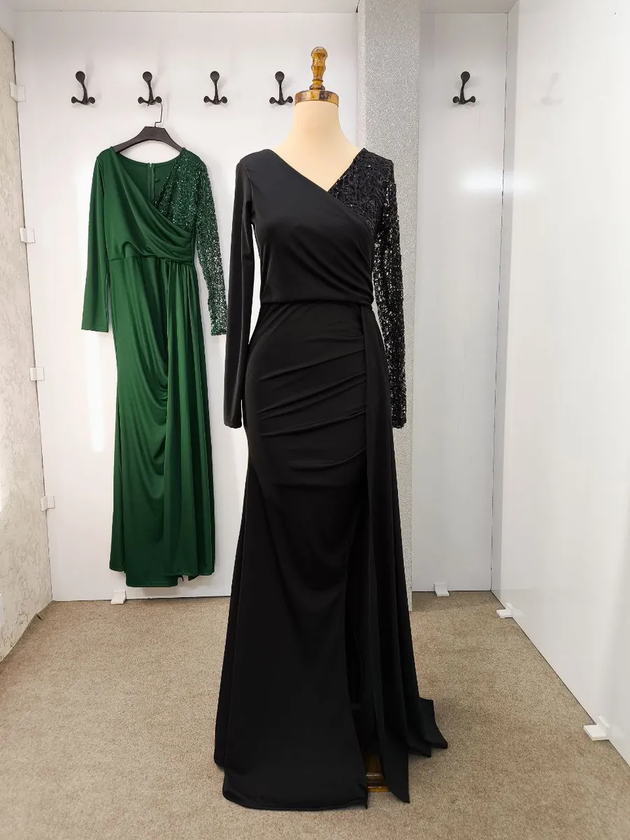 پیراهن بلند ساناز ترکیبی چشمنواز از جلوه پولکهای درخشان و برش اندامی ظریف است. از جنس غواصی کشی و اسپایدر پولکی دوخته شده تا در عین حالت مجلسی و درخشان، کشسانی و راحتی لازم را برای فرم بدن فراهم کند.