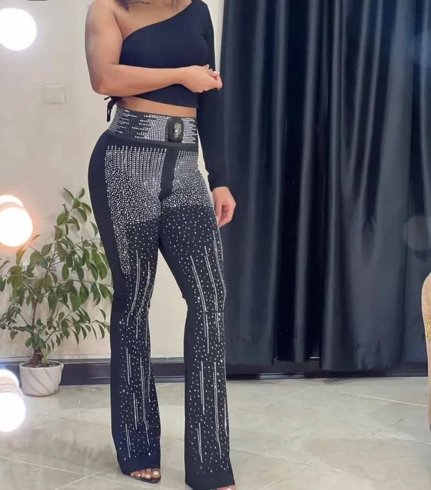 نگینهای براق و ظریف روی پارچه بهصورت کوبیده و فیکسشده کار شدهاند تا درخشش ماندگار و بدون ریزش ایجاد کنند؛ ترکیب بینقصی از ظرافت زنانه و استایل مجلسی مدرن. طراحی جذاب دمپا گشاد باعث کشیدهتر دیدهشدن پاها و استایل شیکتر در کنار کفش پاشنهبلند میشود.