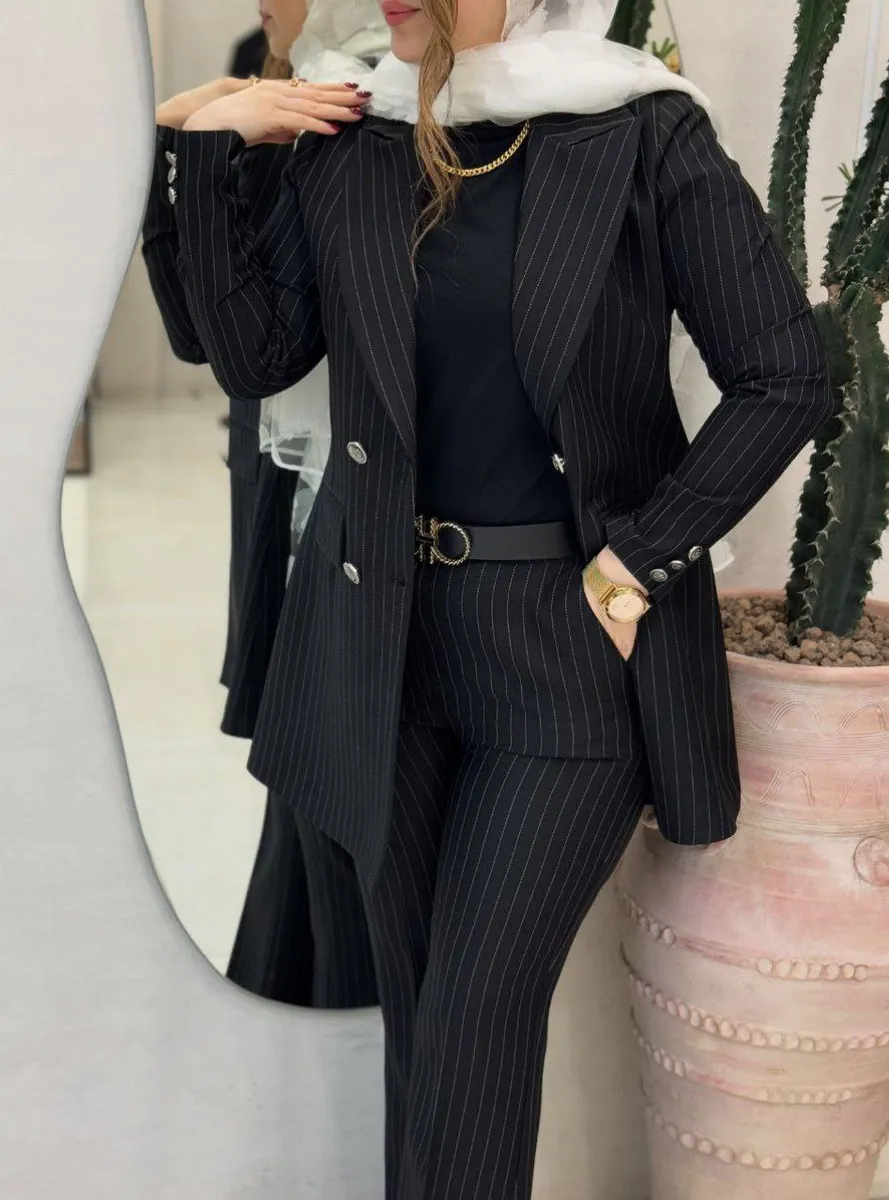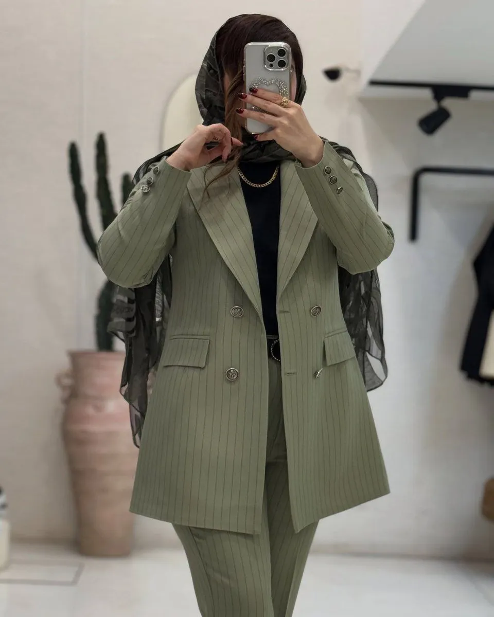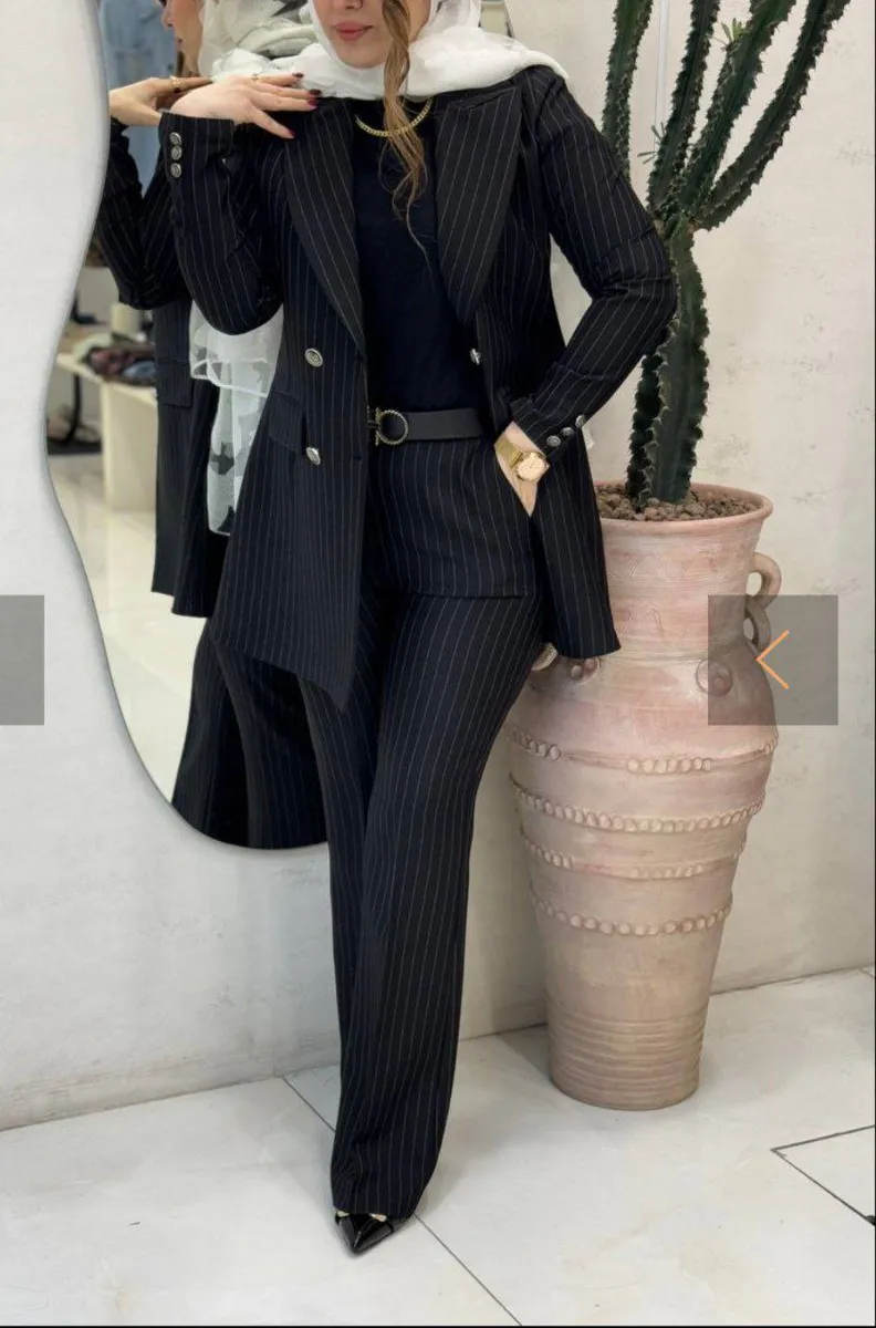 ست کت و شلوار دیپلمات نگار ترکیبی از استایل رسمی و جذابیت روزمره است؛ انتخابی ایدهآل برای خانمهایی که به دنبال لباسی هستند که هم در محیط اداری و رسمی بدرخشد، هم در مهمانیها و موقعیتهای خاص با وقار و ظرافت بدرخشد.