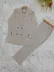 کت دارای جیبهای کاربردی و قد 80 سانتیمتر است، در حالی که شلوار با قد 100 سانتیمتر و کمر کشی از پشت، راحتی طولانیمدت را تضمین میکند. جلوی شلوار با زیپ و دکمه بسته میشود که نمایی تمیز و اداری به آن میدهد. مدل راهنار (دیپلمات) پارچه باعث میشود این ست درخشش خاصی در نورهای مختلف داشته باشد.