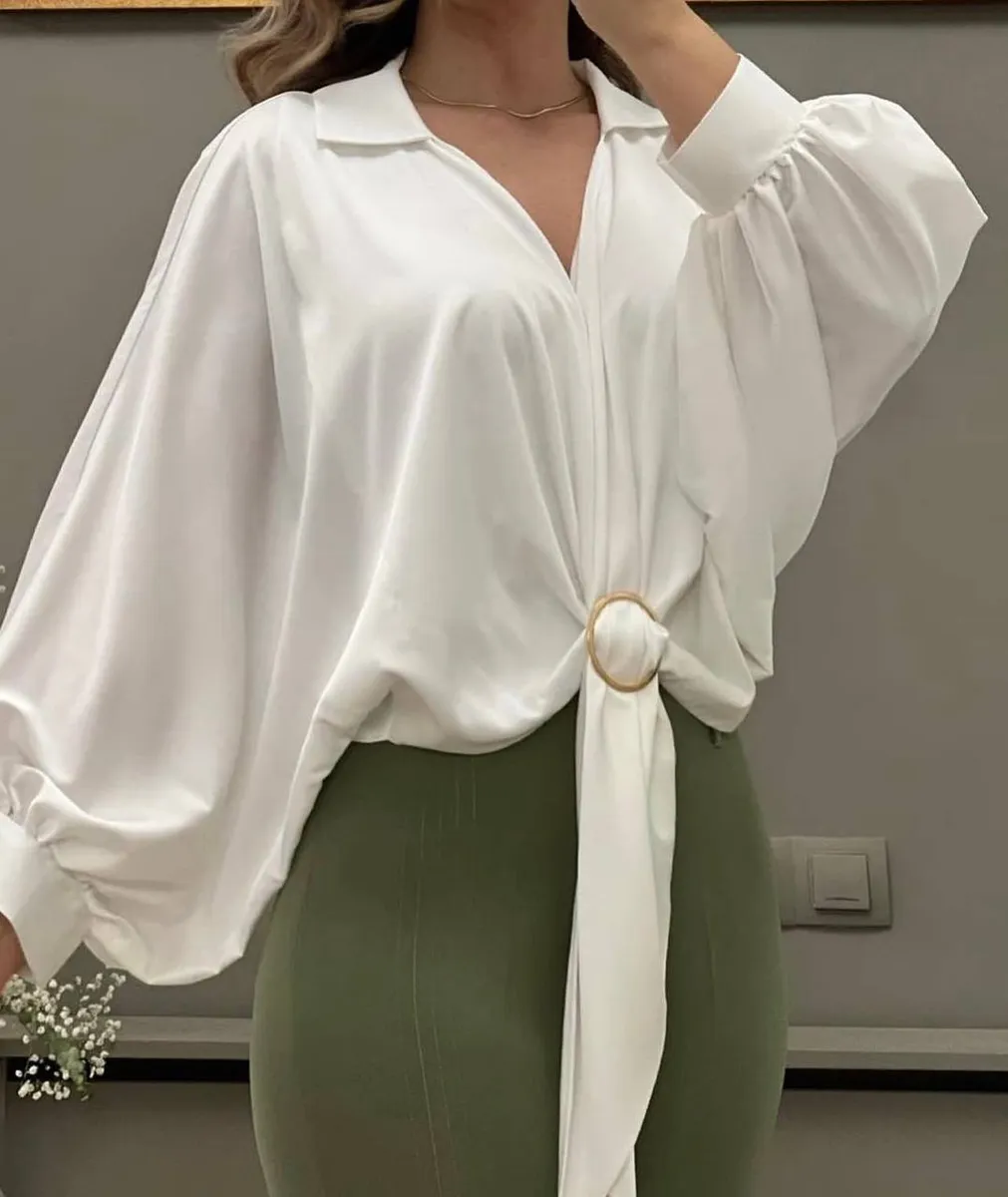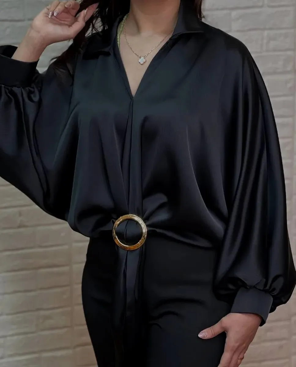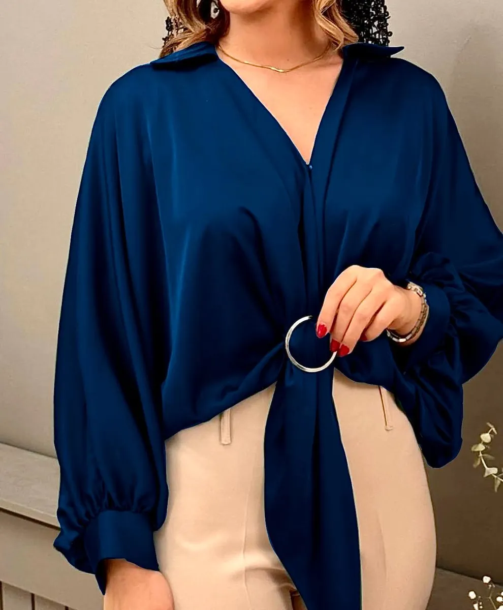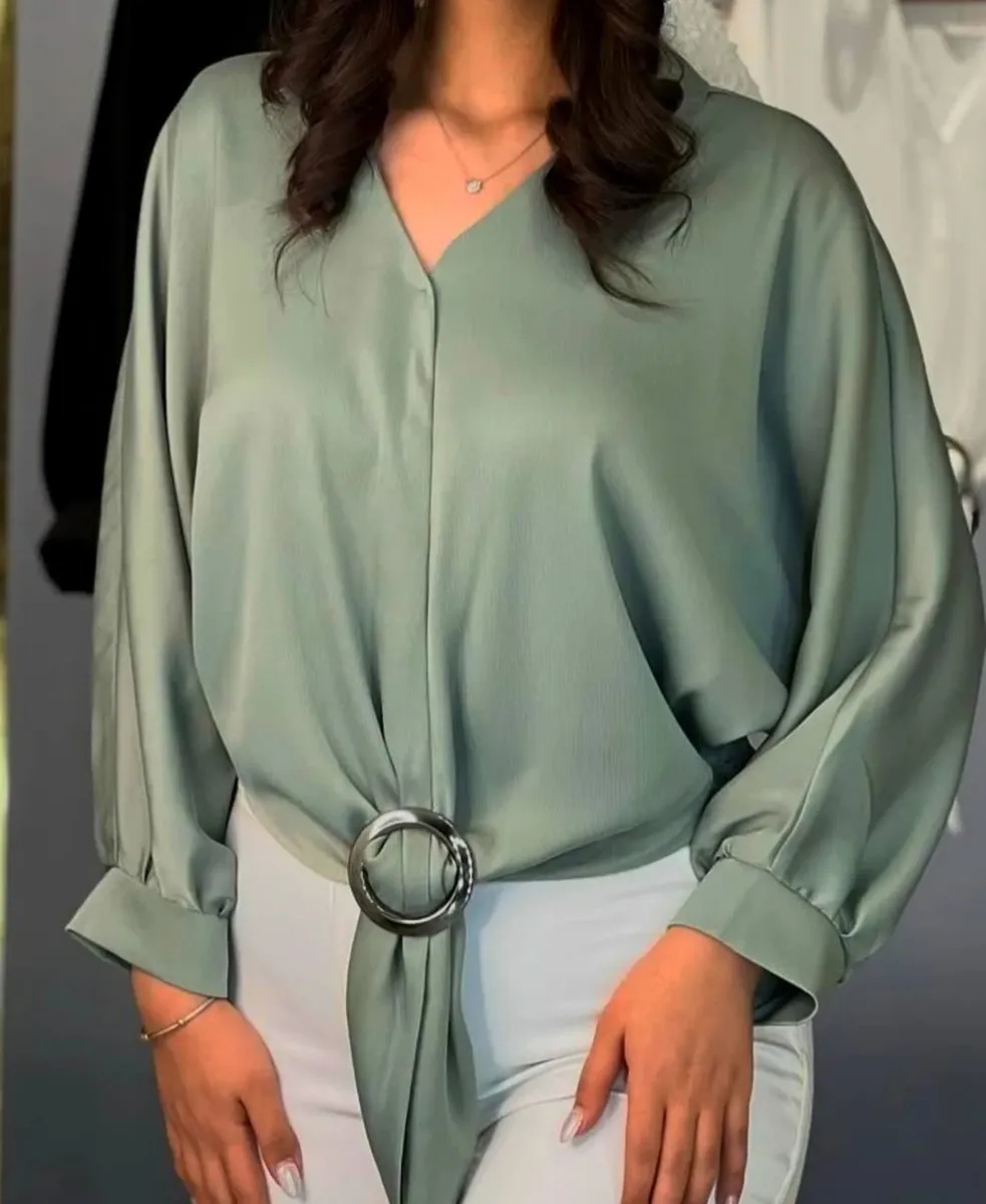 این شومیز هم با دامنهای رسمی و هم با شلوارهای پارچهای و جین بهزیبایی ست میشود و برای مهمانیهای اداری، دورهمی یا مجالس نیمهرسمی انتخابی بینقص است.