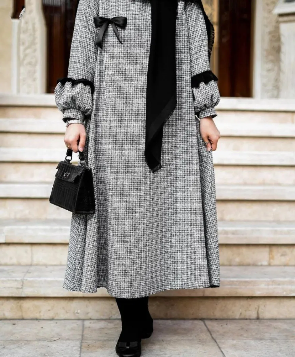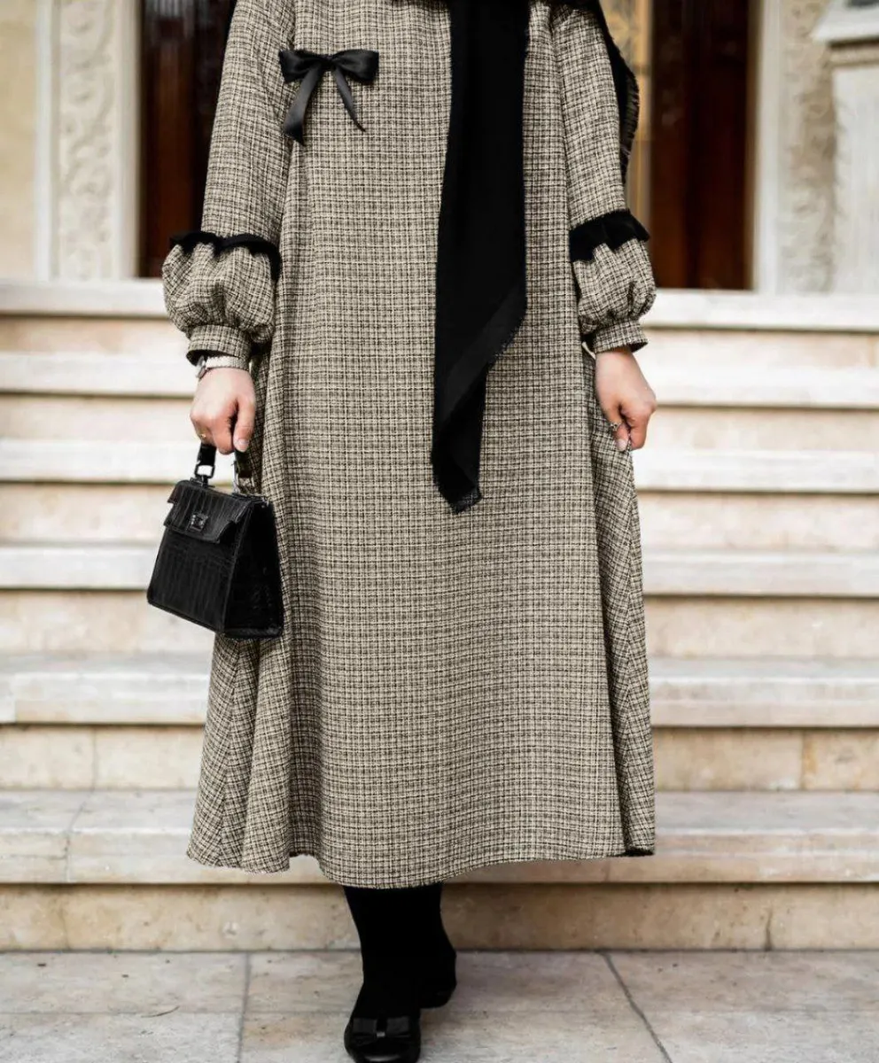 پارچه نرم و لطیف، حس گرما و لطافت پاییزی را القا کرده و با بوت یا اکسسوریهای چرم ترکیب شیکی میسازد
