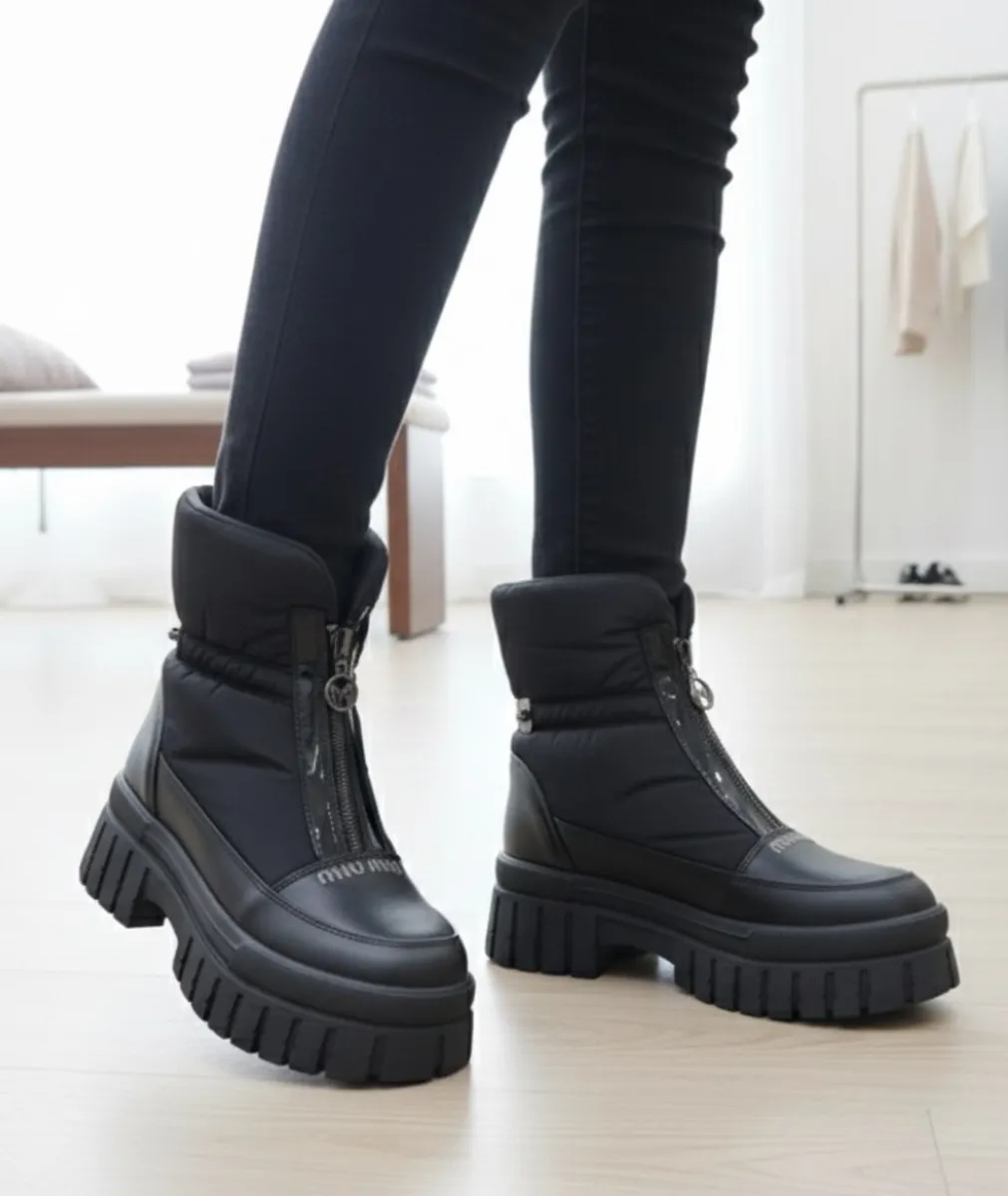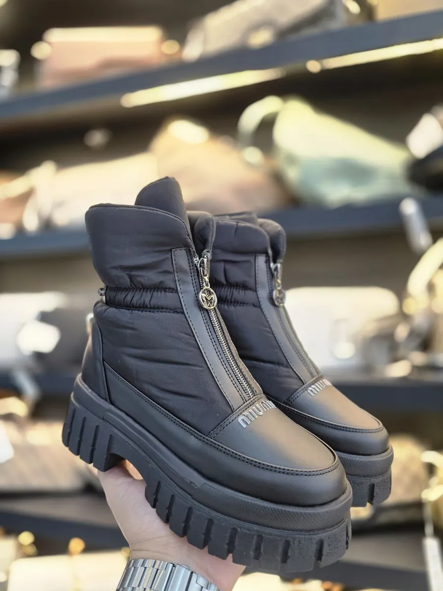 نیم بوت زنانه زیپی لژدار مشکی ورنی – کد 431 با طراحی خاص و براق خود، انتخابی ایدهآل برای خانمهایی است که به دنبال استایل شیک و مدرن هستند.