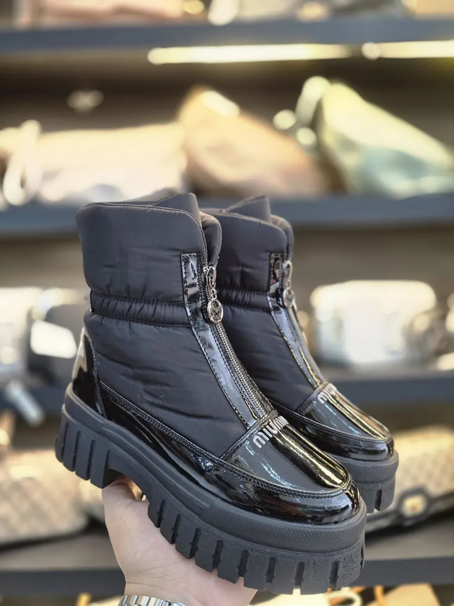 جنس ورنی براق، جلوهای لوکس و چشمنواز به این نیم بوت بخشیده و زیپ کناری باعث پوشیدن آسان و فیت بهتر روی پا میشود.