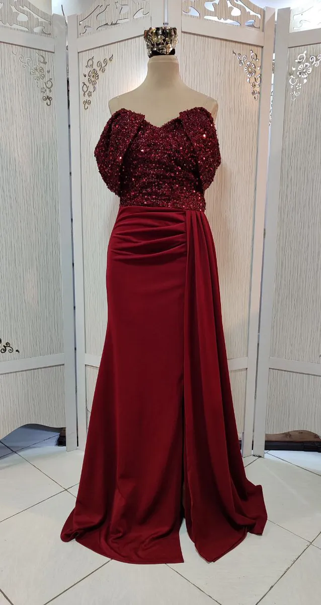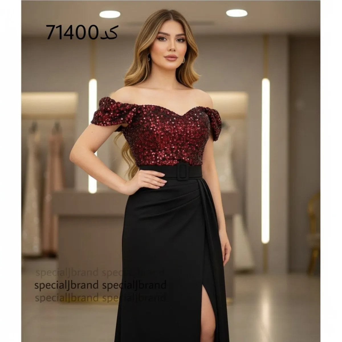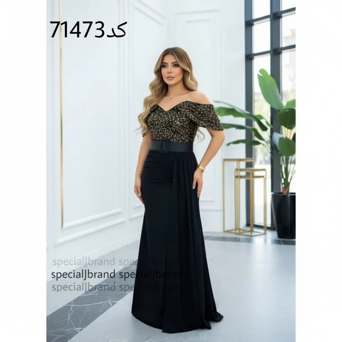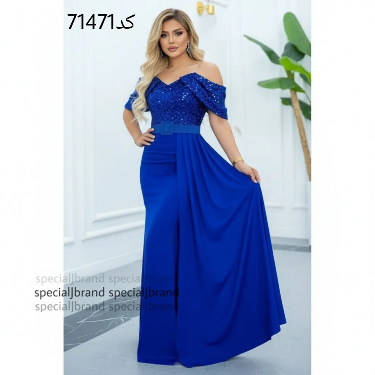 جنس : کرپ کش و پولک چمنی (قد160)(زیپداره)(بند دکلته داره)( چاک 65 )(کمربندداره)