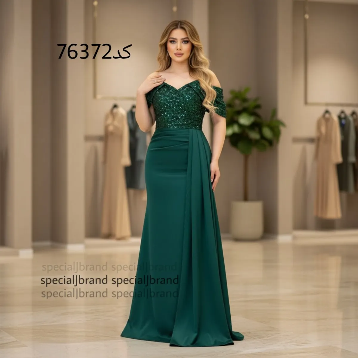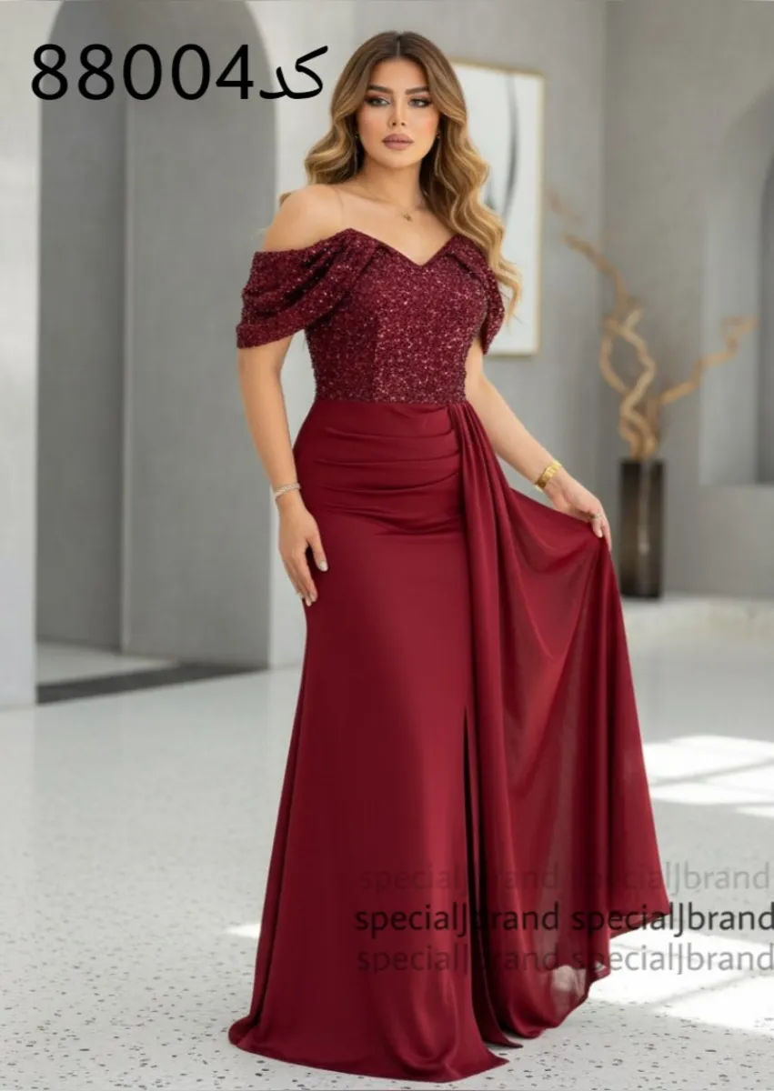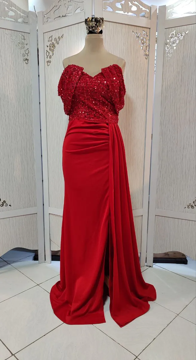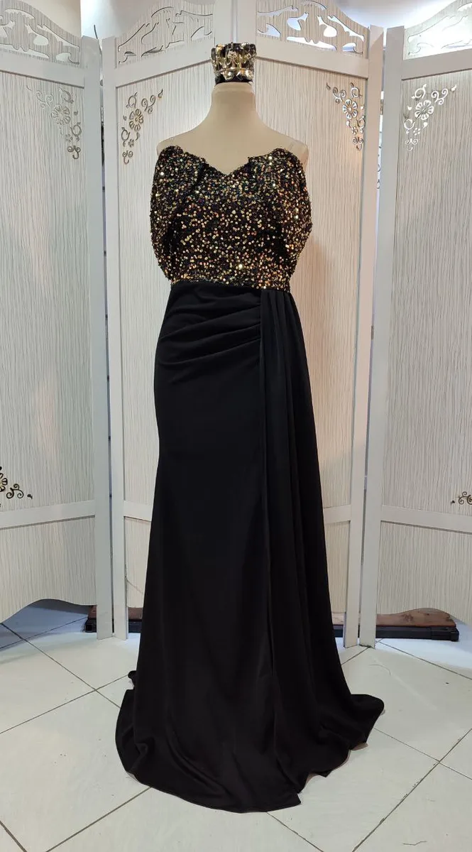 جنس : کرپ کش و پولک چمنی (قد160)(زیپداره)(بند دکلته داره)( چاک 65 )(کمربندداره)