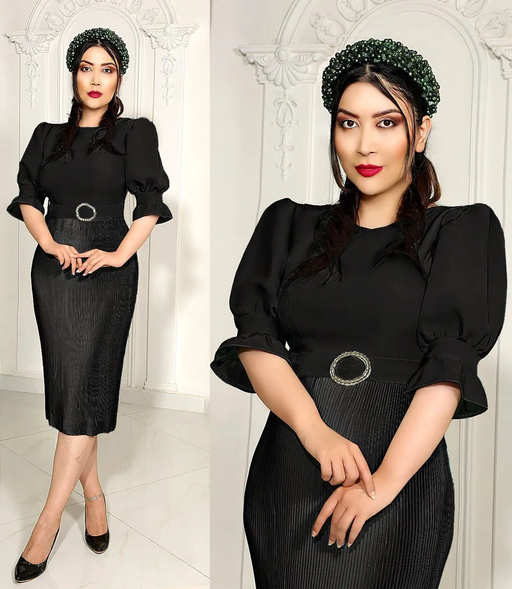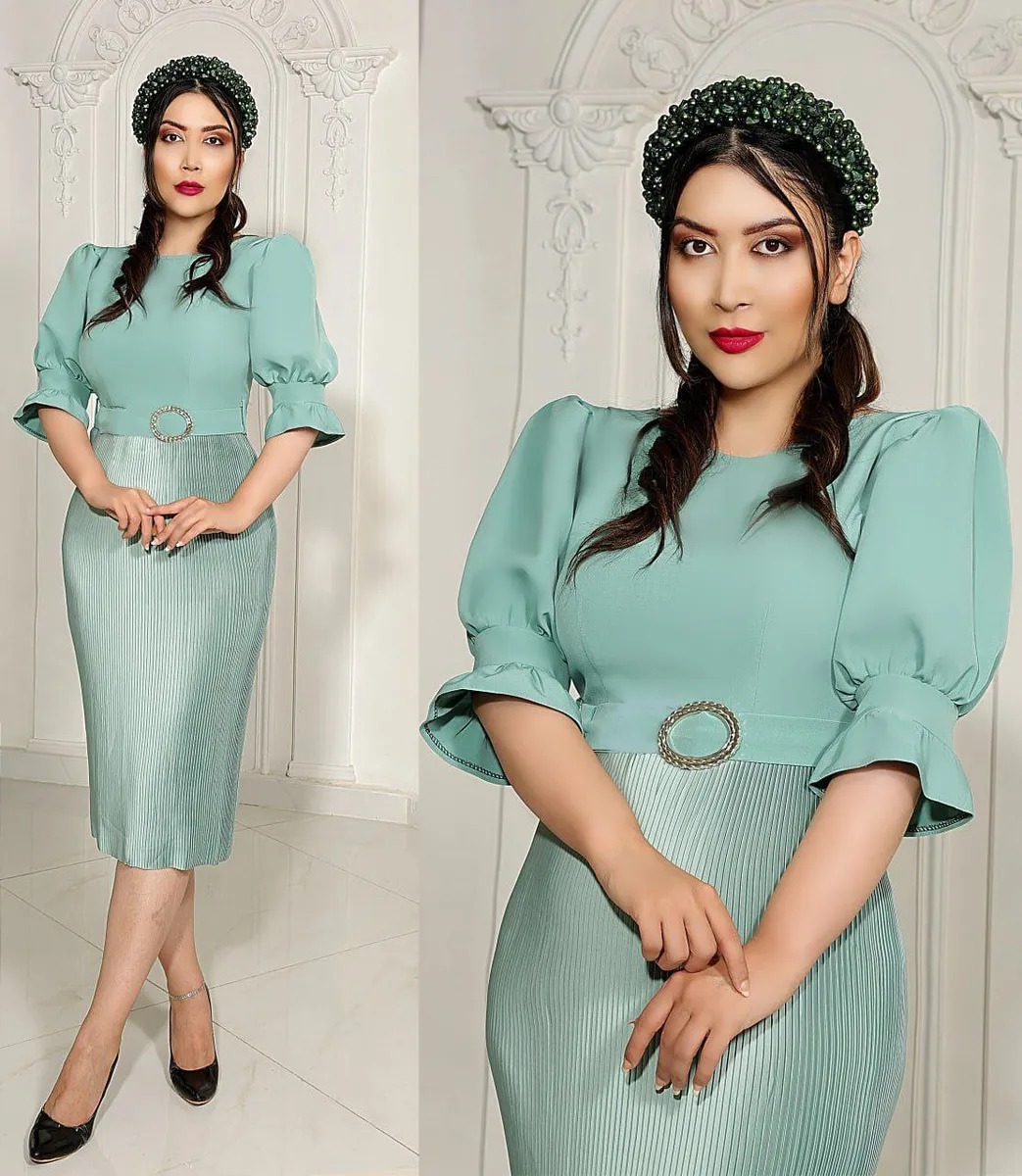 طراحی کار بهصورت کوتاه میدی بوده و با قد 115 سانتیمتر و تنخور اندامی، برای جشنها، دورهمیهای رسمی و مهمانیهای شب، انتخابی ظریف و پرجلوه است. رنگبندی متنوع و لوکس این مدل شامل زرشکی، سبز، نسکافهای و مشکی است که هرکدام نمایانگر وقار و جذابیتی متفاوتاند.