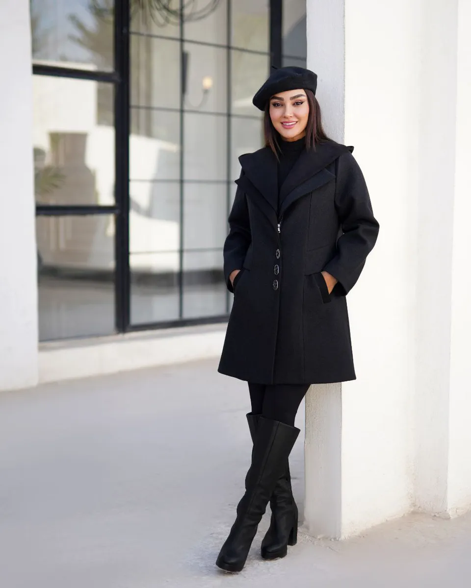 پالتو شانا از کلکسیون پاییزه و زمستانه مودینو، تلفیقی از طراحی مدرن و دوخت کلاسیک است. این مدل با پارچهی فوتر گرم بالا دوخته شده که در عین لطافت، کاملاً مناسب روزهای سرد سال است و حس نرمی و گرمای دلپذیری ایجاد میکند.
