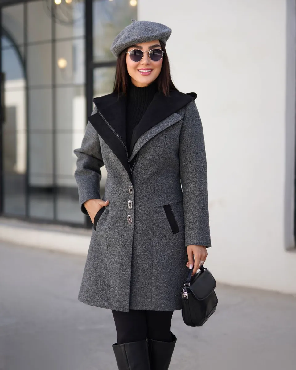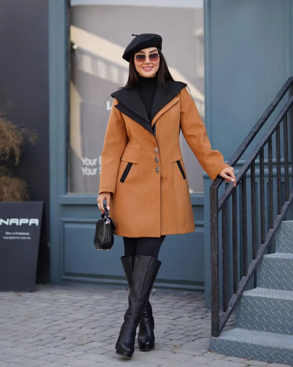 طرح یقه انگلیسی سهقفله جلوهای شیک و دخترانه به لباس بخشیده و امکان پوشش رسمی یا روزمره را فراهم کرده است. پالتو بهصورت کامل آسترکشی شده تا فرم ایستاده و مرتب خود را حفظ کند؛ ضمن اینکه کلاه آن قابل جدا شدن طراحی شده تا کاربر بتواند استایلهای متنوعی بسازد.