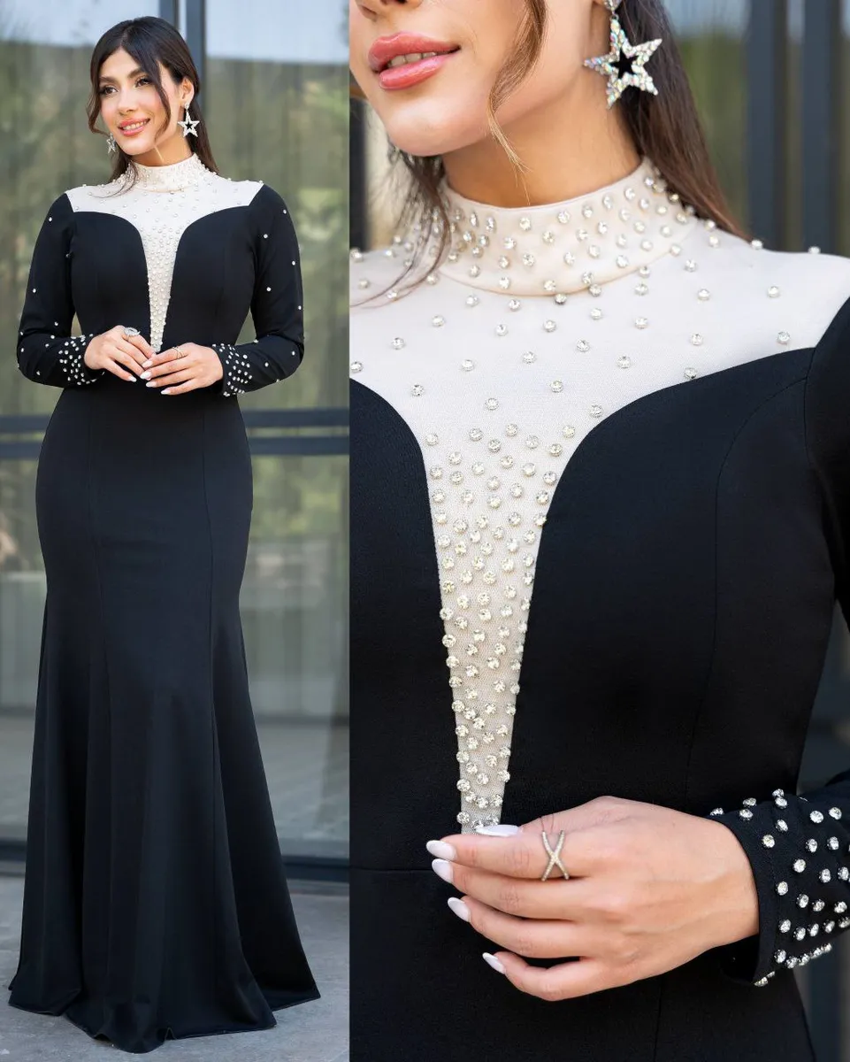 آستین بلند توردار با نگینکاری ظریف، حس شکوه مزونی و زیبایی خاصی را در هر مجلس مجلل ایجاد میکند. قد 150 سانتیمتر مدل بنیتا، علاوه بر کشیدگی اندام، پوشش کامل و فیت حرفهای را برای سایزهای بزرگ تضمین میکند.