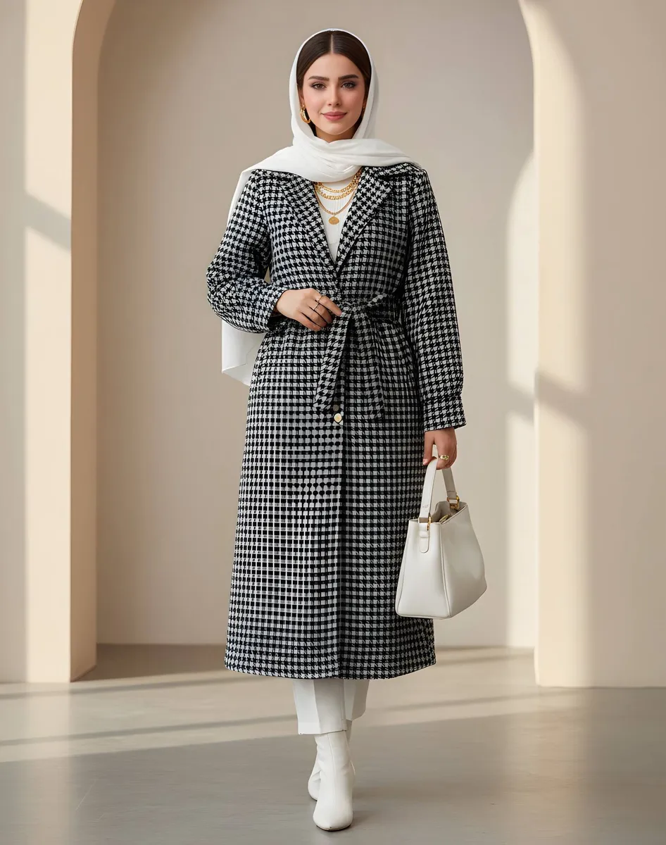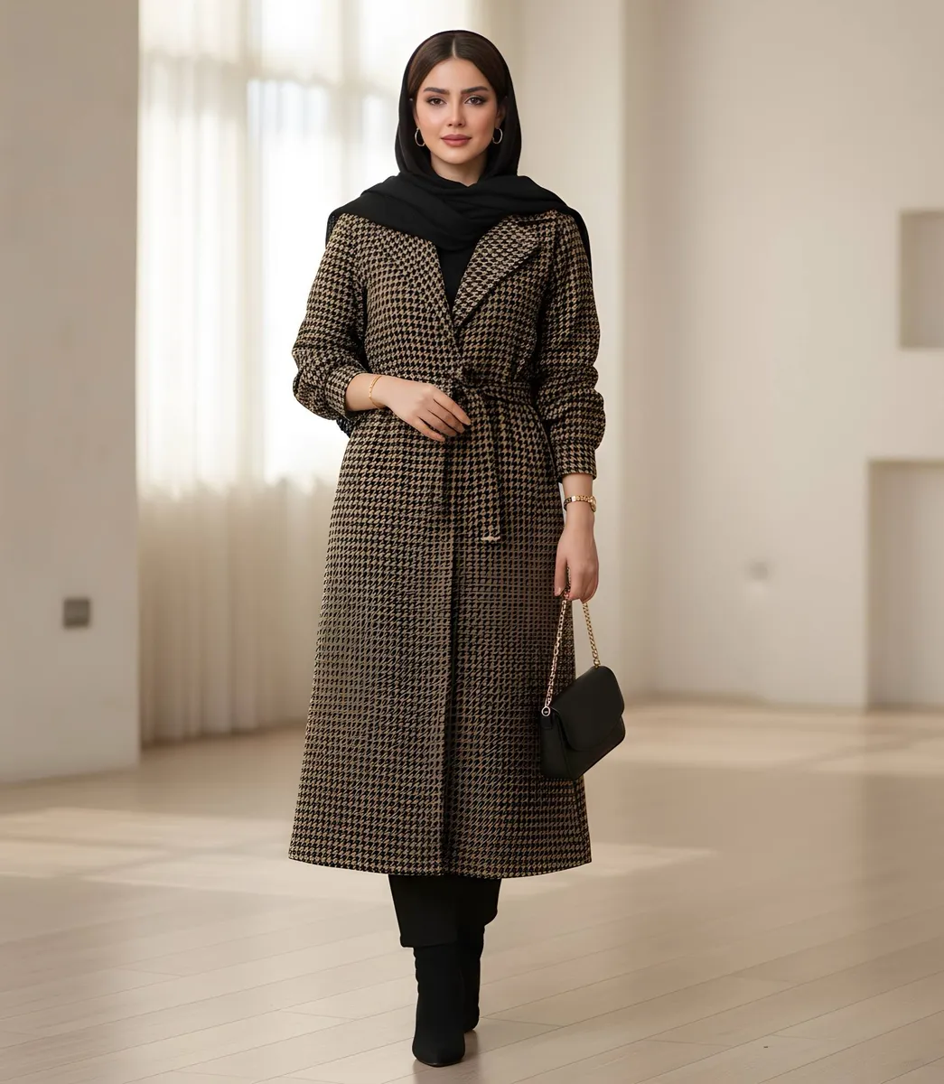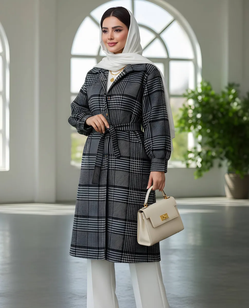 این پالتو بلند با قد حدود 120 سانتیمتر، از پارچه پیچازی درجه یک و با ترکیب چهارخونه کلاسیک و مدرن، حس گرما و ظرافت را در روزهای سرد برایتان فراهم میکند.