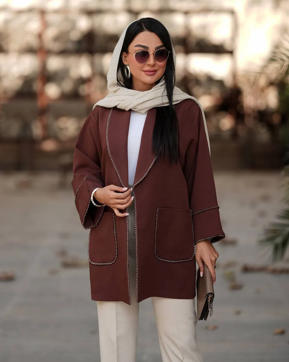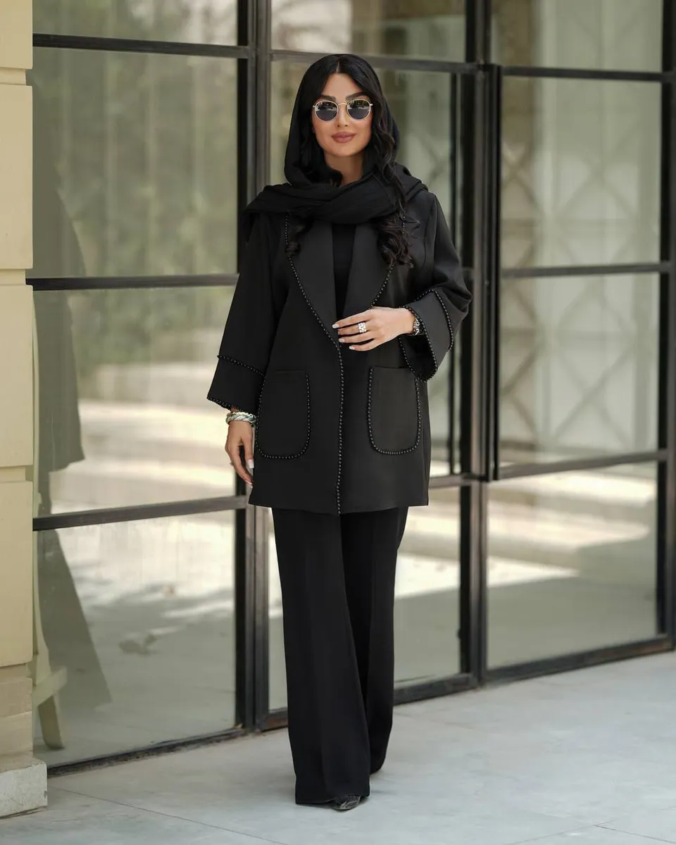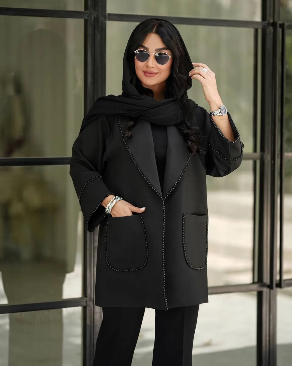 این کت کوتاه رسمی با دوخت مزونی و لاییکشی جلو، ایستایی ویژهای به فرم اندام داده و برای محیطهای کاری، جلسات رسمی یا مهمانیهای ویژه پاییزه بهترین گزینه است.
