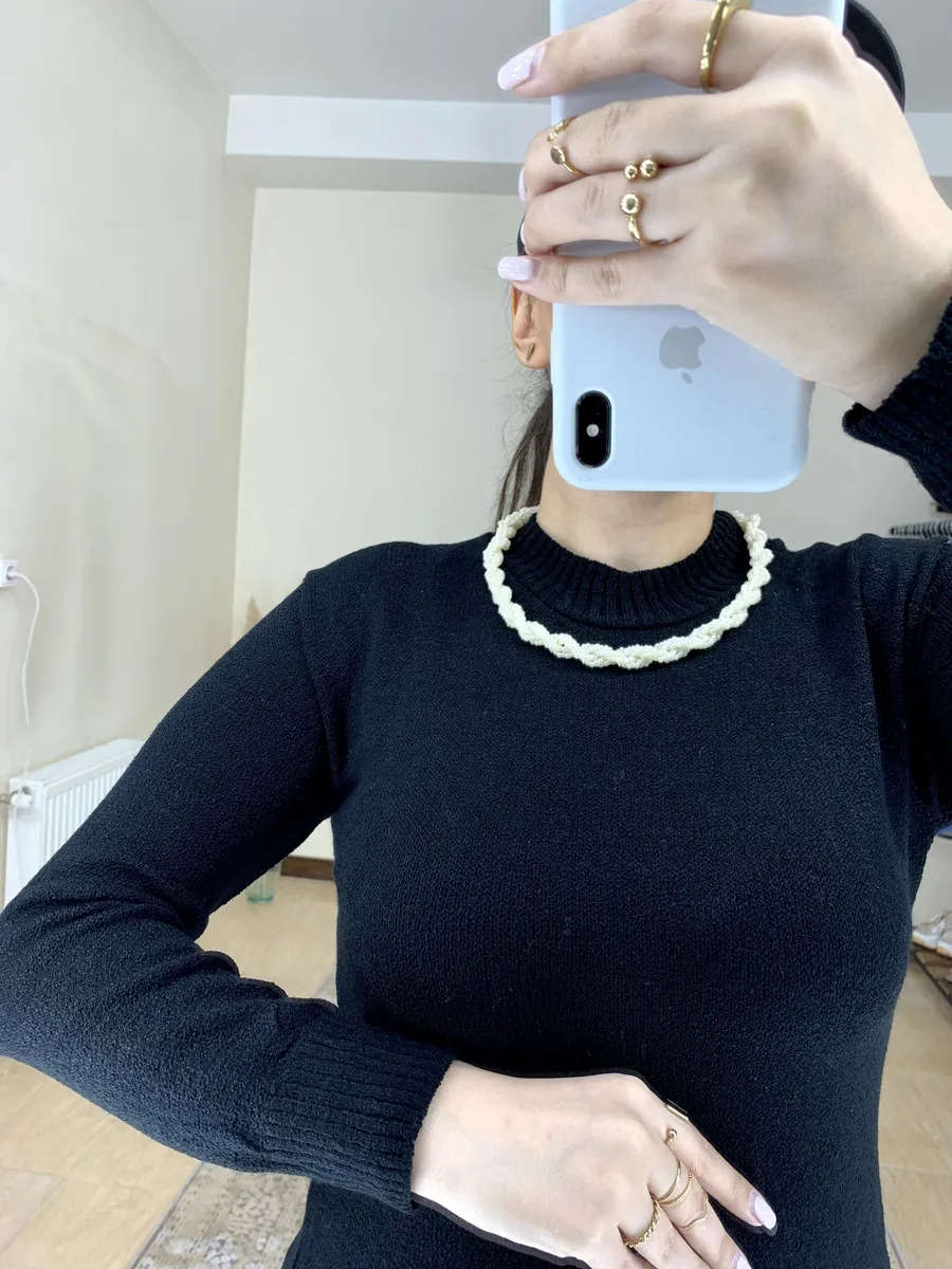 یقه، دمآستین و پایین کار با کشبافت خوشفرم تقویت شده تا به عنوان زیر پالتویی، زیر سارافونی یا حتی روی پافر، به استایل شما مدرنترین جلوه را بدهد و همزمان حفظ گرمای بدن در فصول سرد تضمین کند.