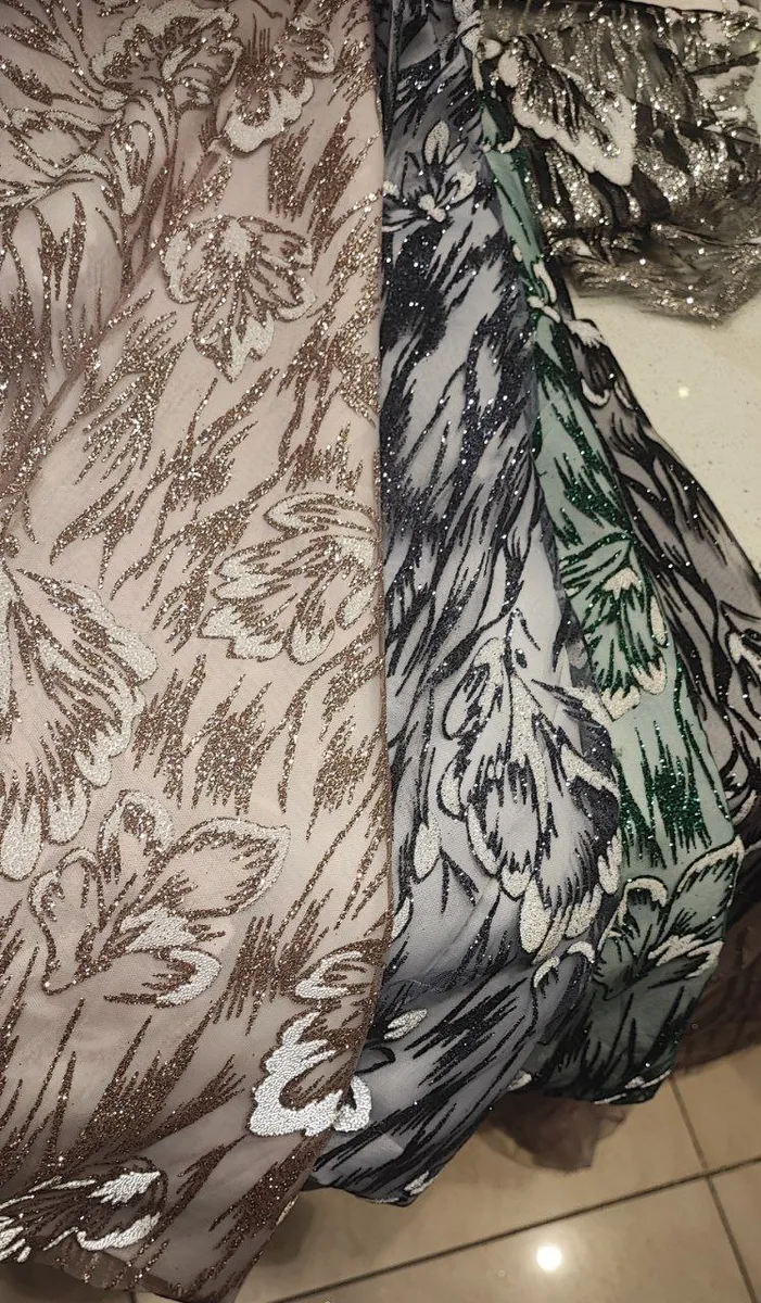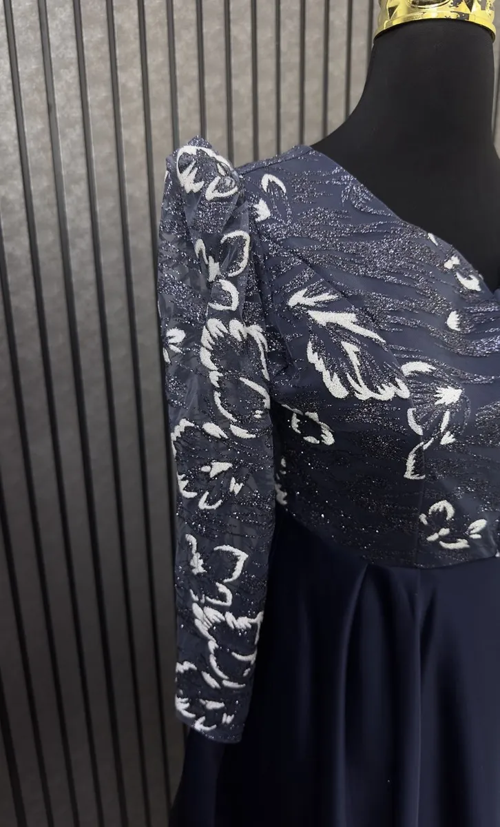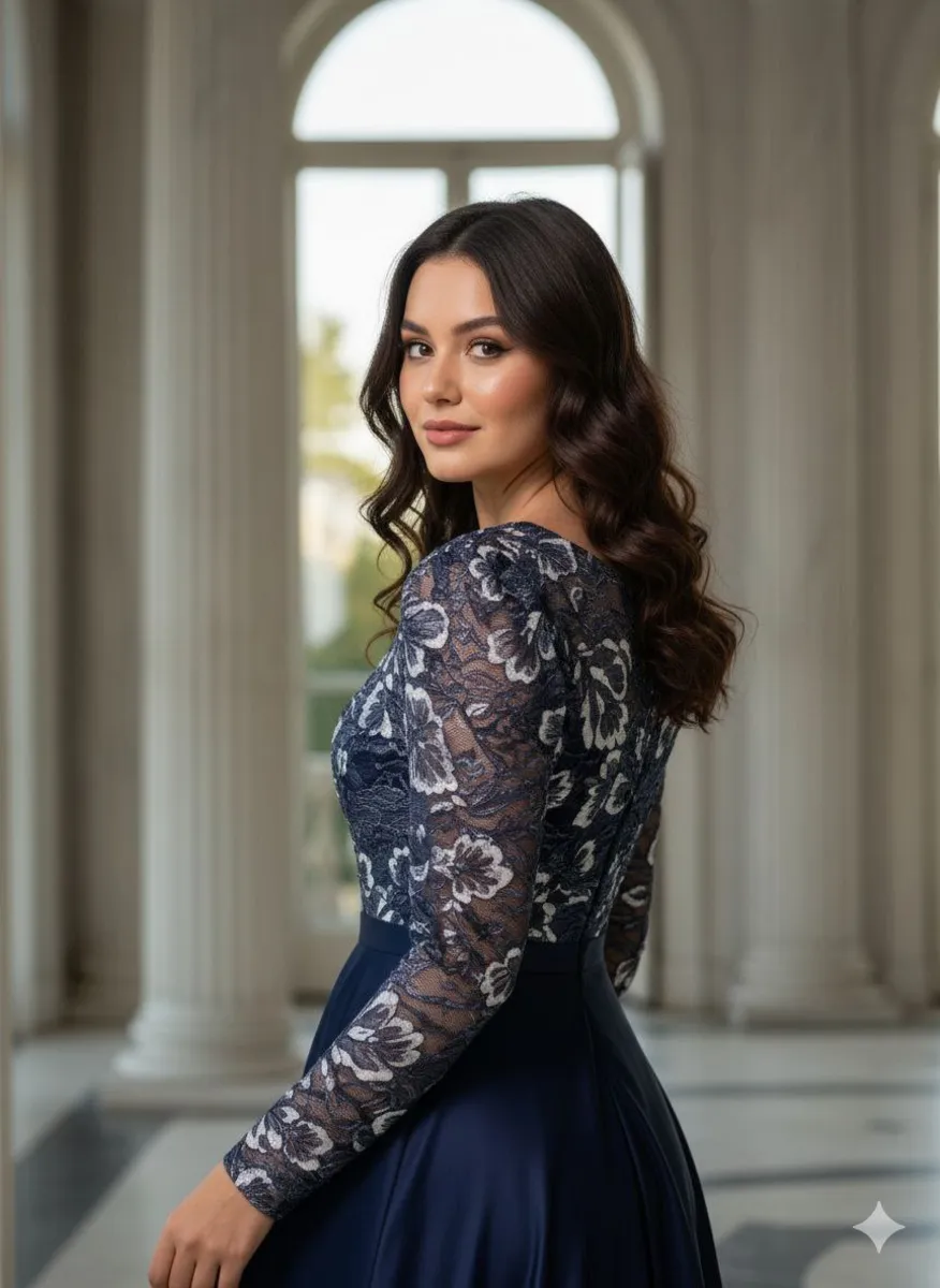 لباس مجلسی فروغ با ترکیب هنرمندانه تور شاین مرواریدی در بالاتنه و دامن کلوش ساتن، تلفیقی بینظیر از سنت و مدرنیته است. بالاتنه درخشان با مرواریدهای ظریف، جلوهای شاهانه و رویایی به شما میبخشد.