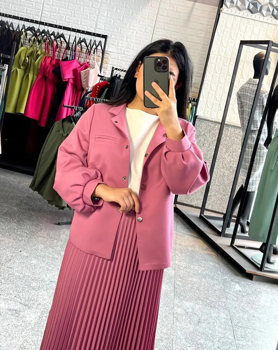 کت این ست با لاییکاری در قسمت جلو، ایستایی فوقالعادهای روی تن دارد و دامن پلیسه آن، ظرافت و حرکتی زیبا به استایل شما میبخشد. رنگ دلنشین کالباسی-صورتی آن، لطافت دخترانهای دارد و آن را به گزینهای عالی هم برای یک مهمانی شیک و هم یک دورهمی اسپرت تبدیل کرده است. این ست، ترکیبی هوشمندانه از زیبایی و کیفیت است که در کمد شما خواهد درخشید.