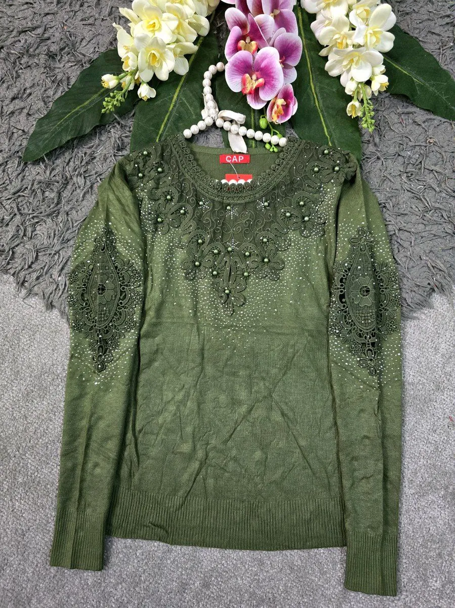 * **تنخور عالی و فریسایز:** طراحی **فریسایز** هوشمندانه و کشسانی عالی این بافت، باعث میشود تا تنخوری بینقص برای سایزهای 36 تا 46 داشته باشد و به زیبایی بر اندام بنشیند. قد مناسب و **آستینهای بلند**، آن را برای ست کردن با انواع دامن و شلوار ایدهآل میسازد.