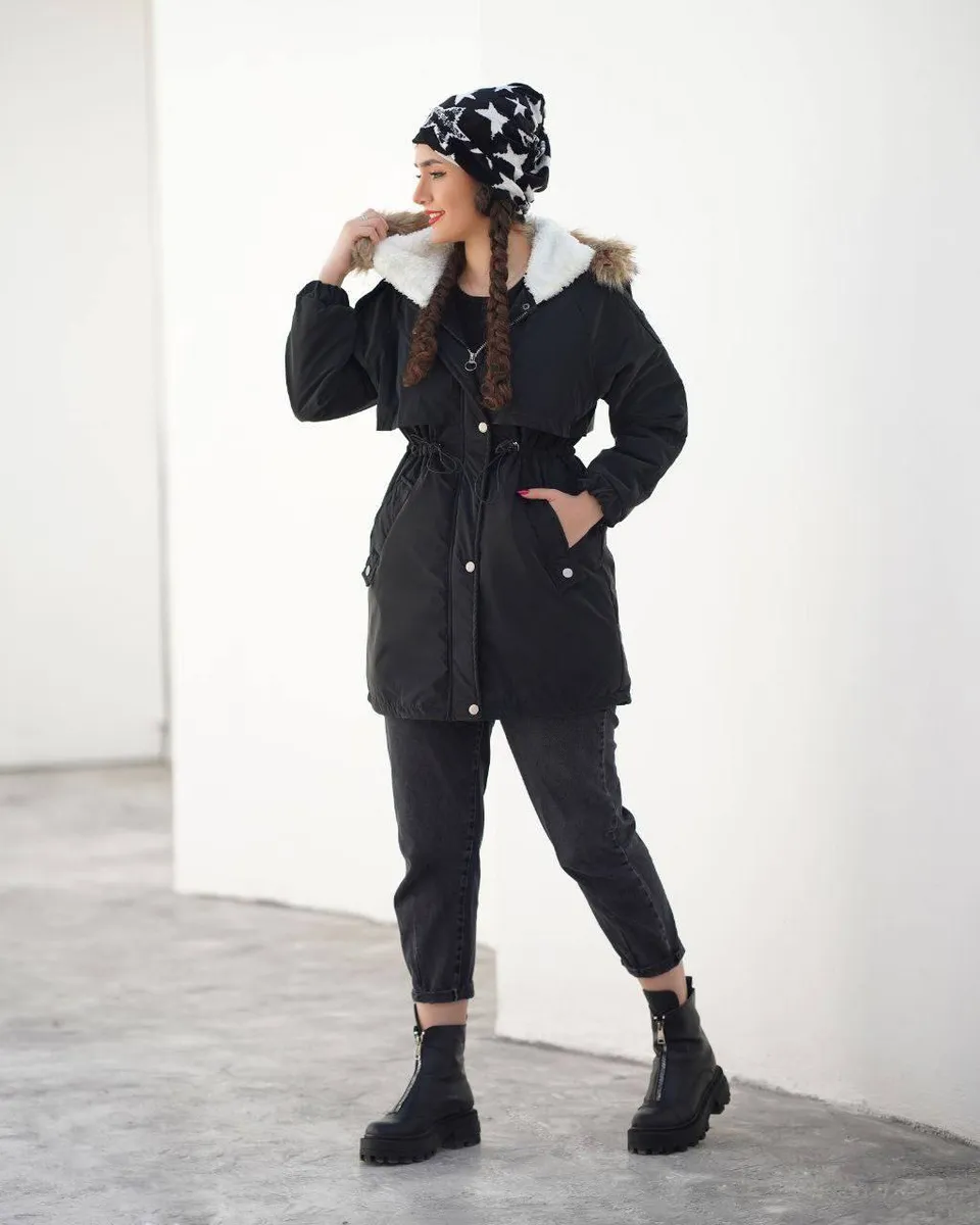 * **طراحی کاربردی و شیک:** این **کاپشن کلاهدار** با طراحی بلند خود، پوشش کاملی را فراهم میکند. کلاه آن نیز دارای آستر ببعی بوده و از سر و گوشهای شما در برابر باد و سرما به خوبی محافظت میکند. استایل کژوال و مدرن آن، این محصول را به انتخابی ایدهآل برای دانشگاه، خرید، پیادهروی و استفاده روزمره تبدیل کرده است.