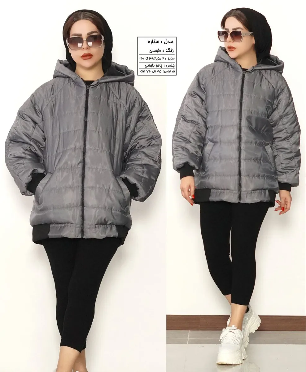 * **پوشش سایزبندی گسترده و واقعی:** مهمترین ویژگی مدل "ستاره"، توجه ویژه به سایزبندی است. این کاپشن در دو سایز ارائه میشود که **سایز یک آن از 38 تا 48** و **سایز دو به طور شگفتانگیزی از 50 تا 60** را پوشش میدهد. این یک انتخاب ایدهآل برای خانمهایی است که به دنبال **کاپشن سایز بزرگ** با تنخور عالی هستند.