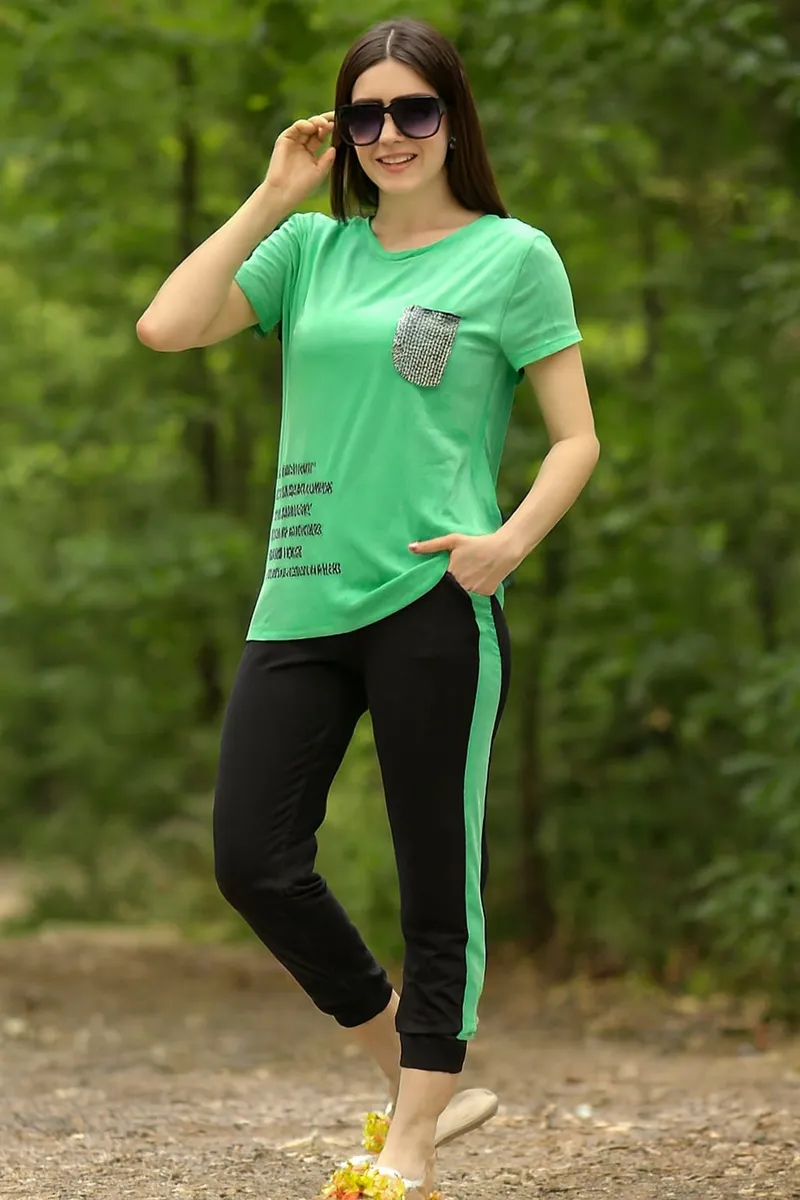 * **جزئیات درخشان، استایل متفاوت:** وجه تمایز اصلی این ست، **جیبهای پولکدوزی شده** آن است. این جزئیات ظریف و شیک، یک لمس خاص و دخترانه به ست اضافه کرده و آن را از لباسهای ورزشی ساده متمایز میکند. درخششی ملایم که انرژی و جذابیت شما را دوچندان میکند!