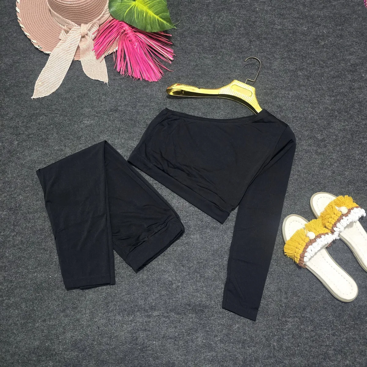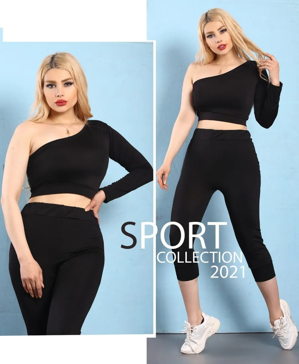 با ست دو تیکه “رومی”، با استایلی مینیمال و شیک به تمرینات خود بپردازید. این ست مشکی و ساده، یک انتخاب کاربردی و ضروری برای کمد لباسهای ورزشی هر خانمی است.
