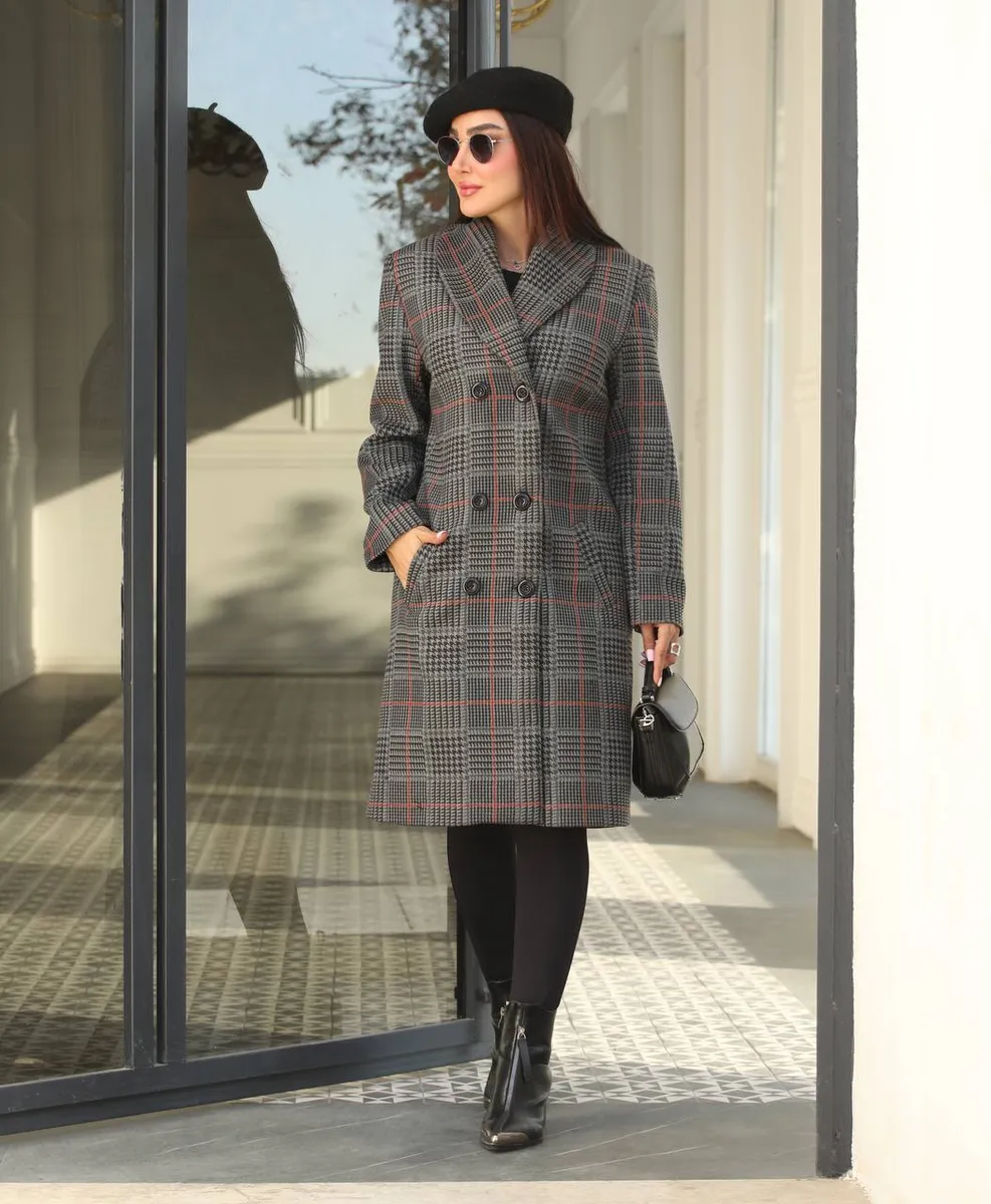 * **طراحی کلاسیک و جذاب:** طرح جاودانه **چهارخونه** در کنار مدل **چهار دکمه**، ظاهری باوقار و همیشه مد روز به شما میبخشد. این پالتو به راحتی با انواع استایلهای رسمی و روزمره ست میشود.