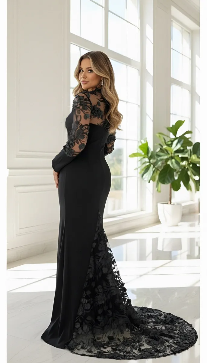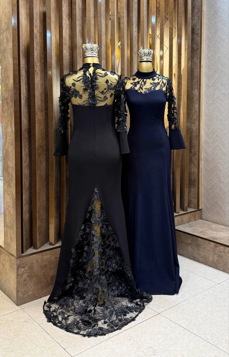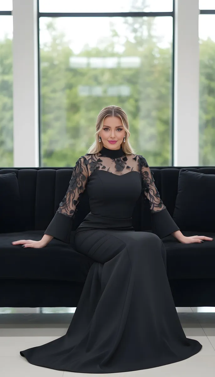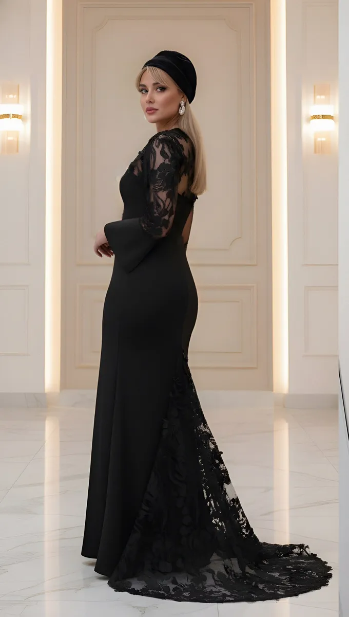 * **ایدهآل برای لباس شب و مراسم عروسی:** طراحی باوقار، رنگبندی کلاسیک (مشکی و سرمهای) و جزئیات کار شده، این پیراهن را به گزینهای بیرقیب برای **لباس شب** و یک انتخاب عالی برای مهمانان ویژه در **مراسم عروسی** تبدیل کرده است.