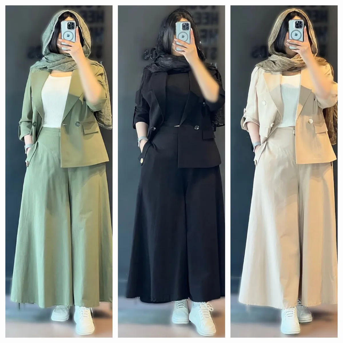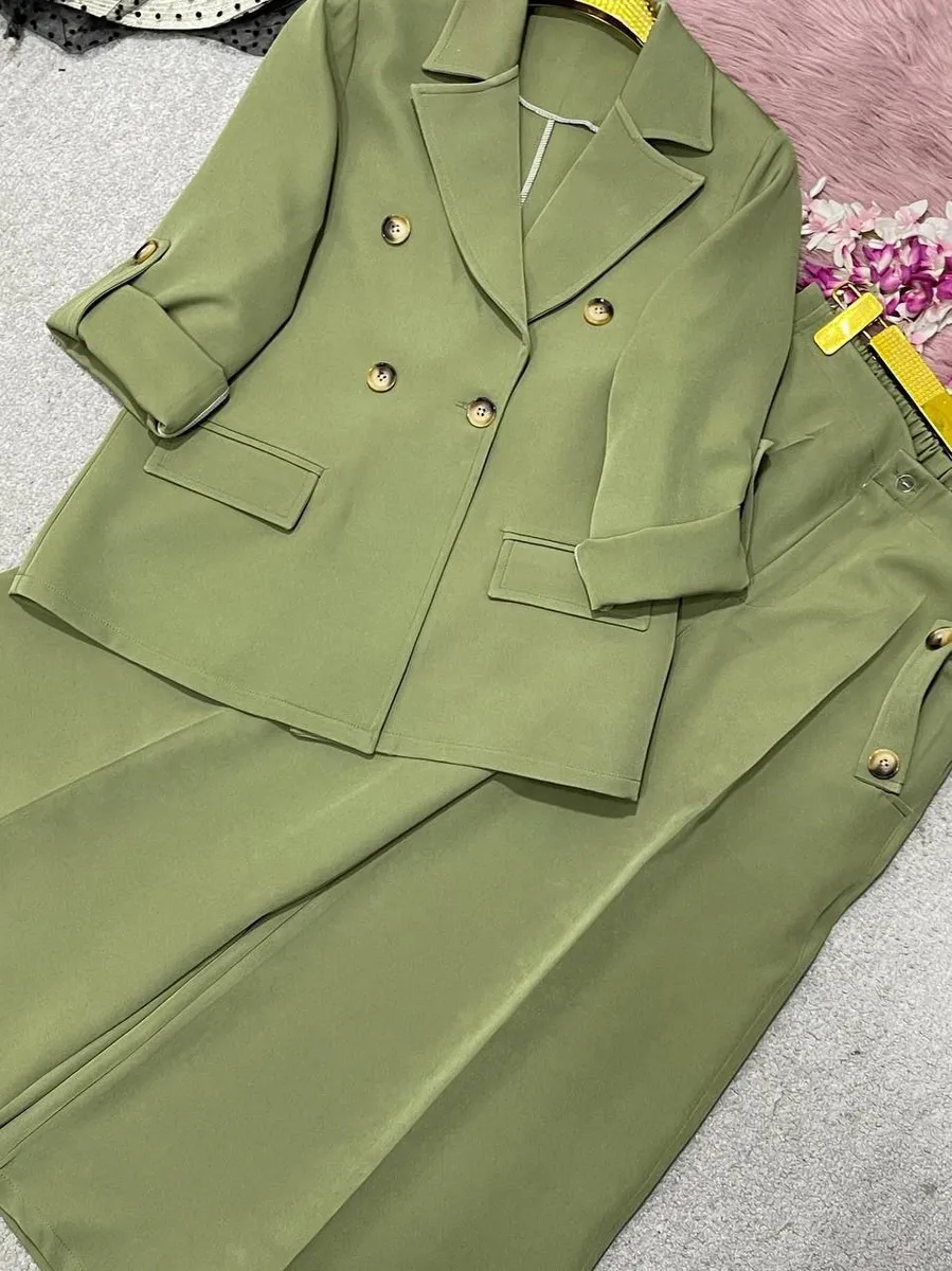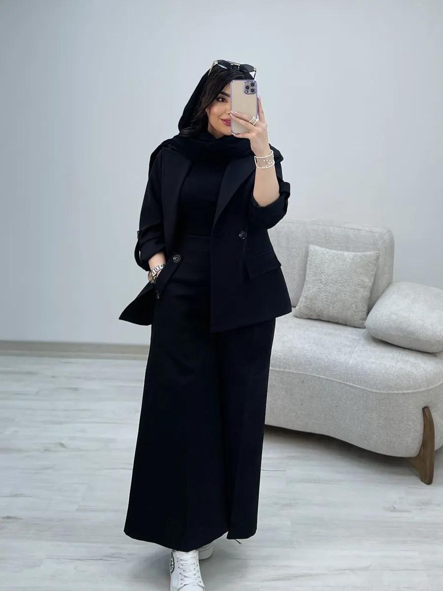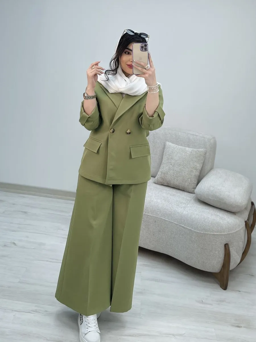شلوار این ست با **برش واید لگ (گشاد)** و دمپای پهن، نه تنها راحتی بینظیری را به ارمغان میآورد، بلکه کاملاً مطابق با آخرین ترندهای دنیای مد است. طراحی هوشمندانه کمر شلوار، ترکیبی از بهترینهاست: **پشت کمر کش** برای راحتی و فیت شدن کامل، و **زیپ و دکمه در جلو** برای حفظ ظاهر شیک و رسمی یک شلوار کلاسیک. وجود دو جیب کاربردی، این شلوار را به انتخابی بینقص تبدیل کرده است.