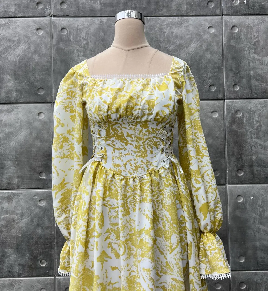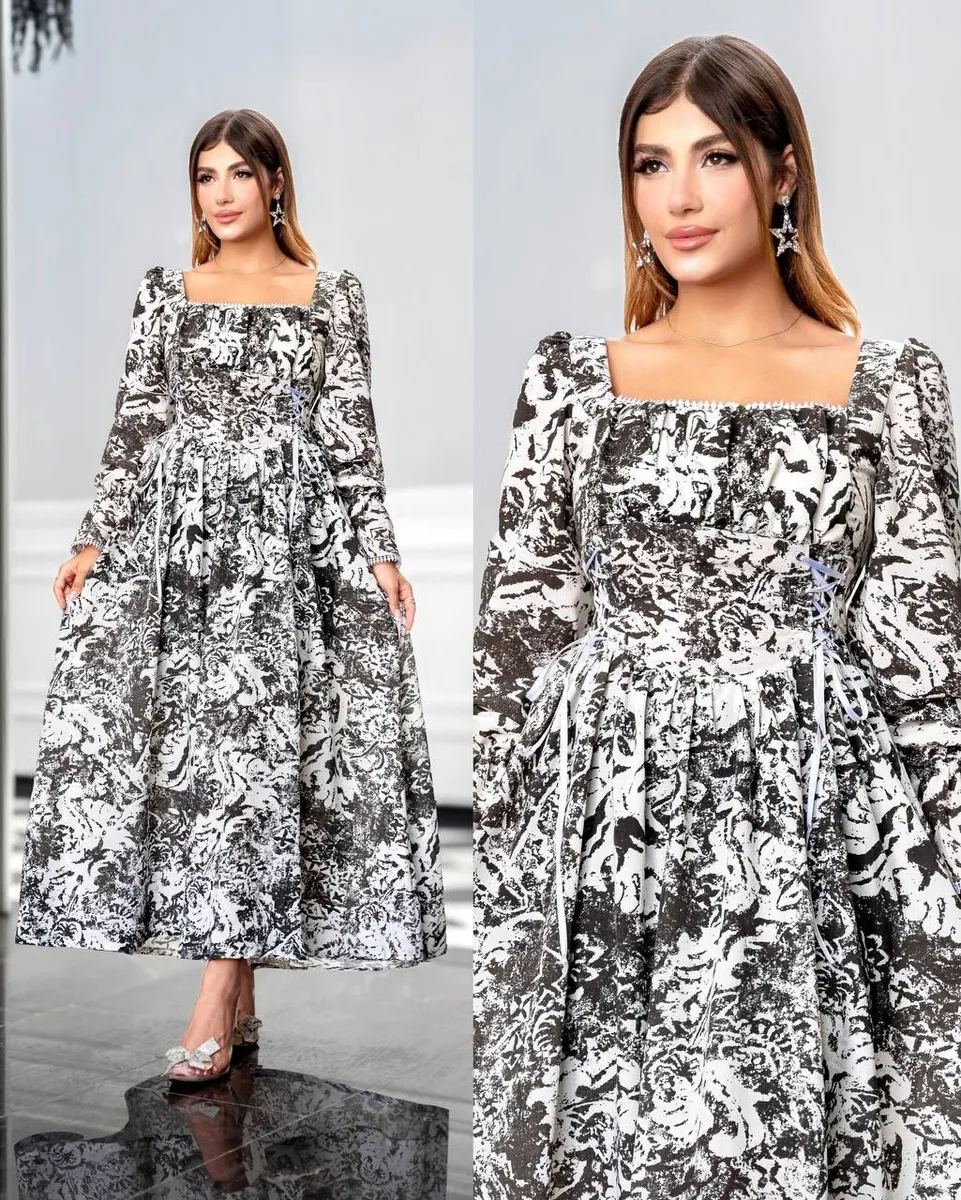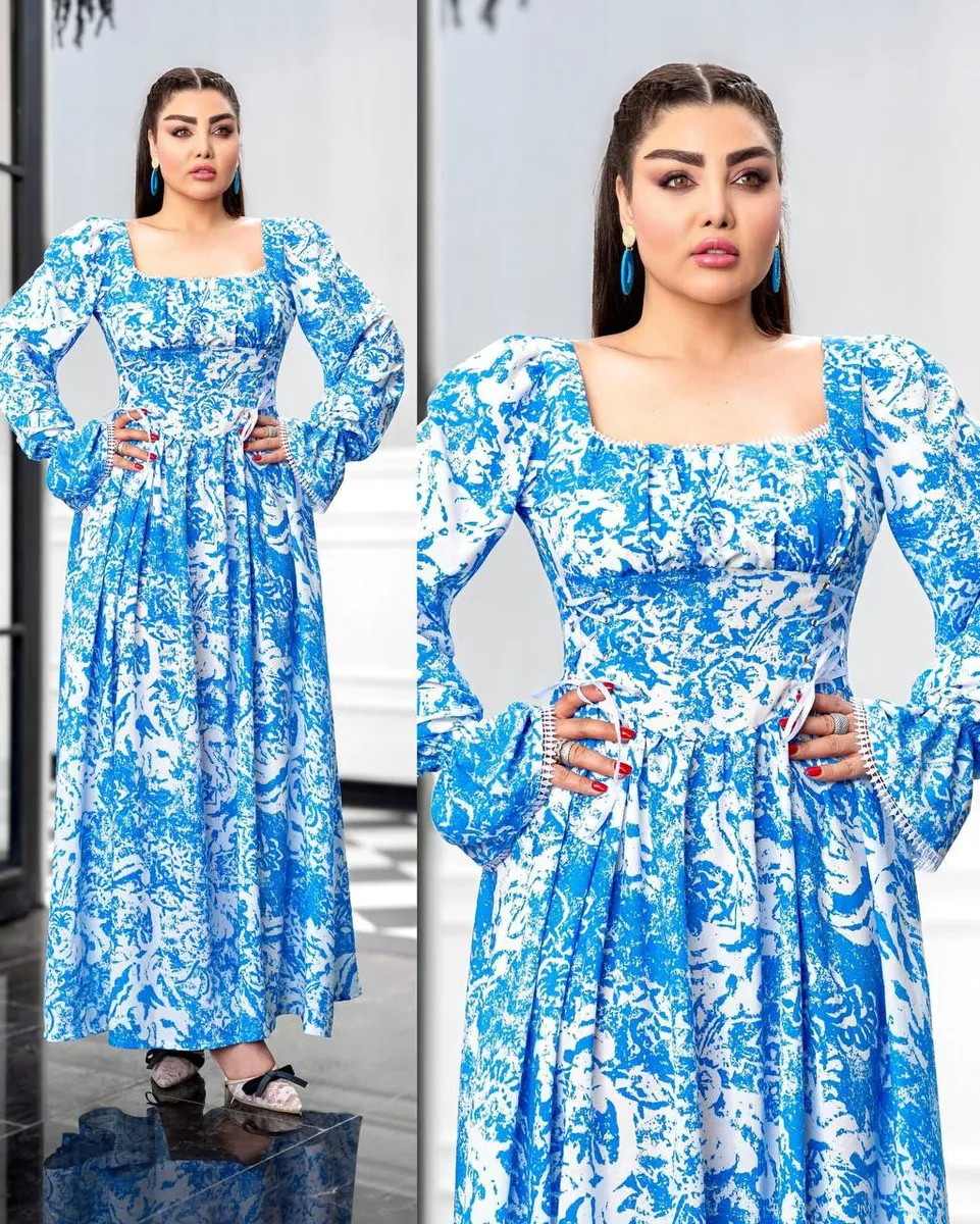 این پیراهن از پارچهی بوگاتی چاپی باکیفیت دوخته شده؛ با بافت نرم، ایستایی عالی و طرحهای مدرن و زنده که ظاهر آن را لوکس و اصیل میسازد. چاپ پارچه در رنگهای آبی، زرد و مشکی طراحی شده تا استایلی متفاوت، جوانپسند و پرانرژی برای مهمانیها، جشنها و تولدها ایجاد کند.