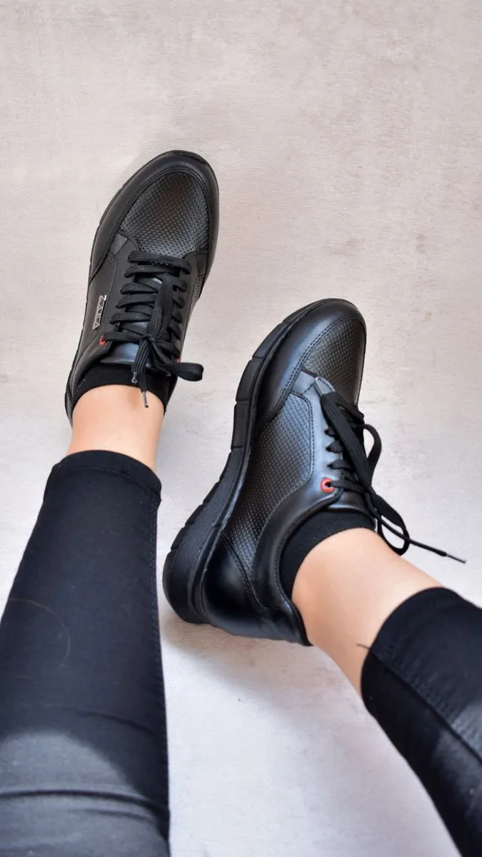 کفش مشکی بندی دخترانه انتخابی مینیمال و راحت برای استایلهای روزمره، اسپرت و نیمهکلاسیک است. طراحی ساده و هماهنگ آن با پوششهای دانشجویی، خیابانی و حتی اداری، این مدل را به یکی از پراستفادهترین کفشهای فصل تبدیل کرده است.