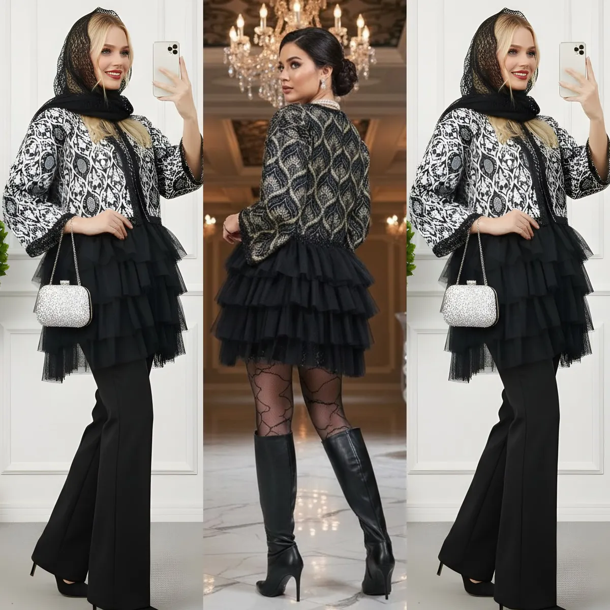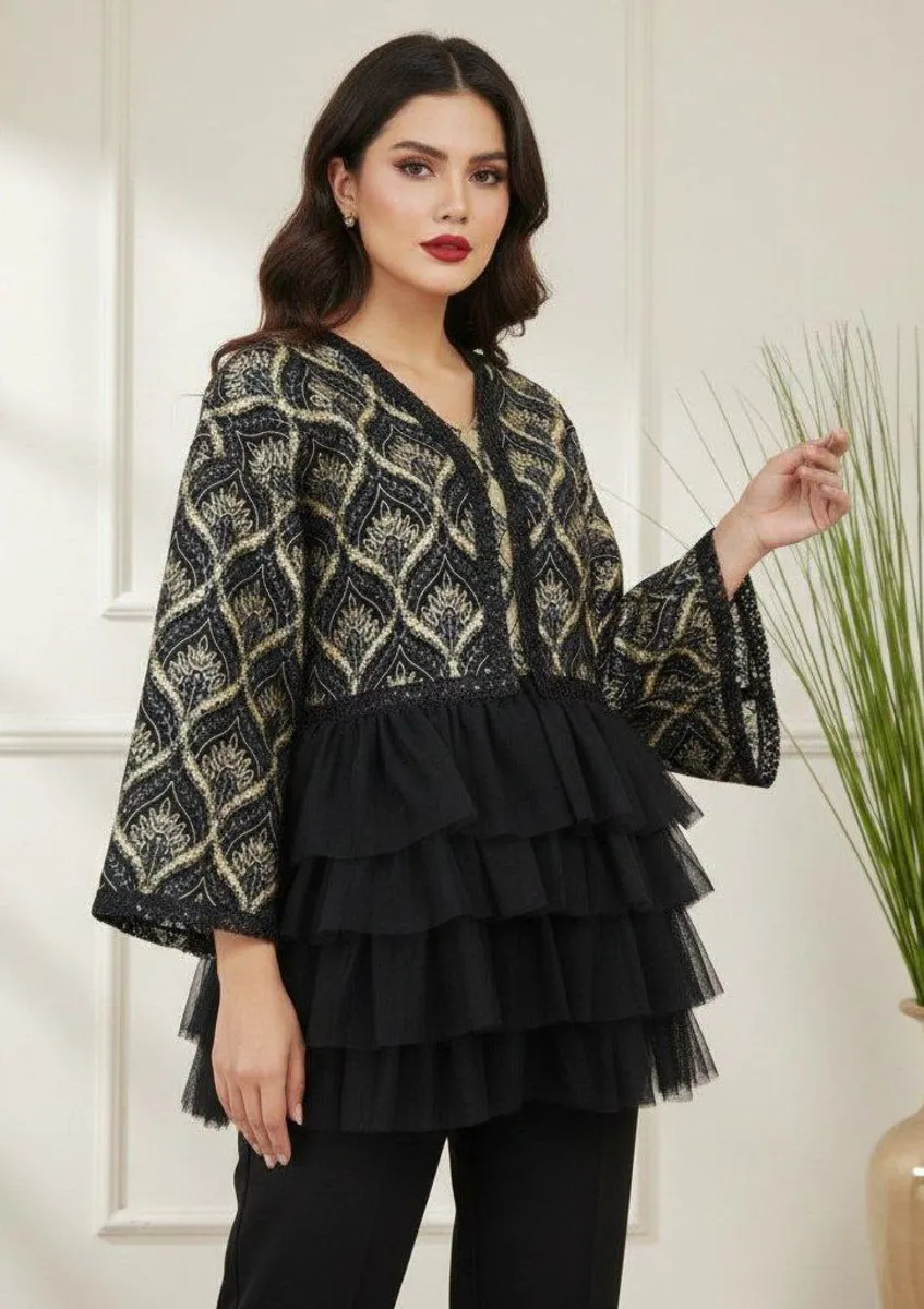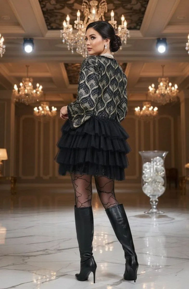 مدل **کت تور طبقهای** از کالکشن مجلسی برند **مودینو**، انتخابی خاص و درخشان برای بانوانی است که به دنبال ظرافت، جلوه و درخشش در استایل خود هستند. این مدل با طراحی **سوزندوزی و تور طبقهای**، ترکیب چشمگیری از جذابیت زنانه و ظرافت مزونی را به نمایش میگذارد.