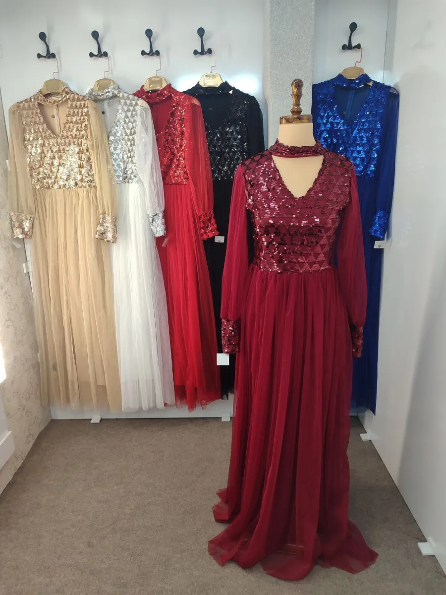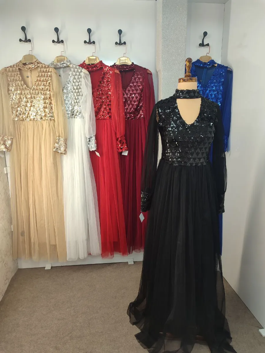 این ماکسی پولکی توری، با درخشش ظریف و طراحی کلاسیک، انتخابی بینقص برای لباس شب، جشن و مراسم مجلسی است.