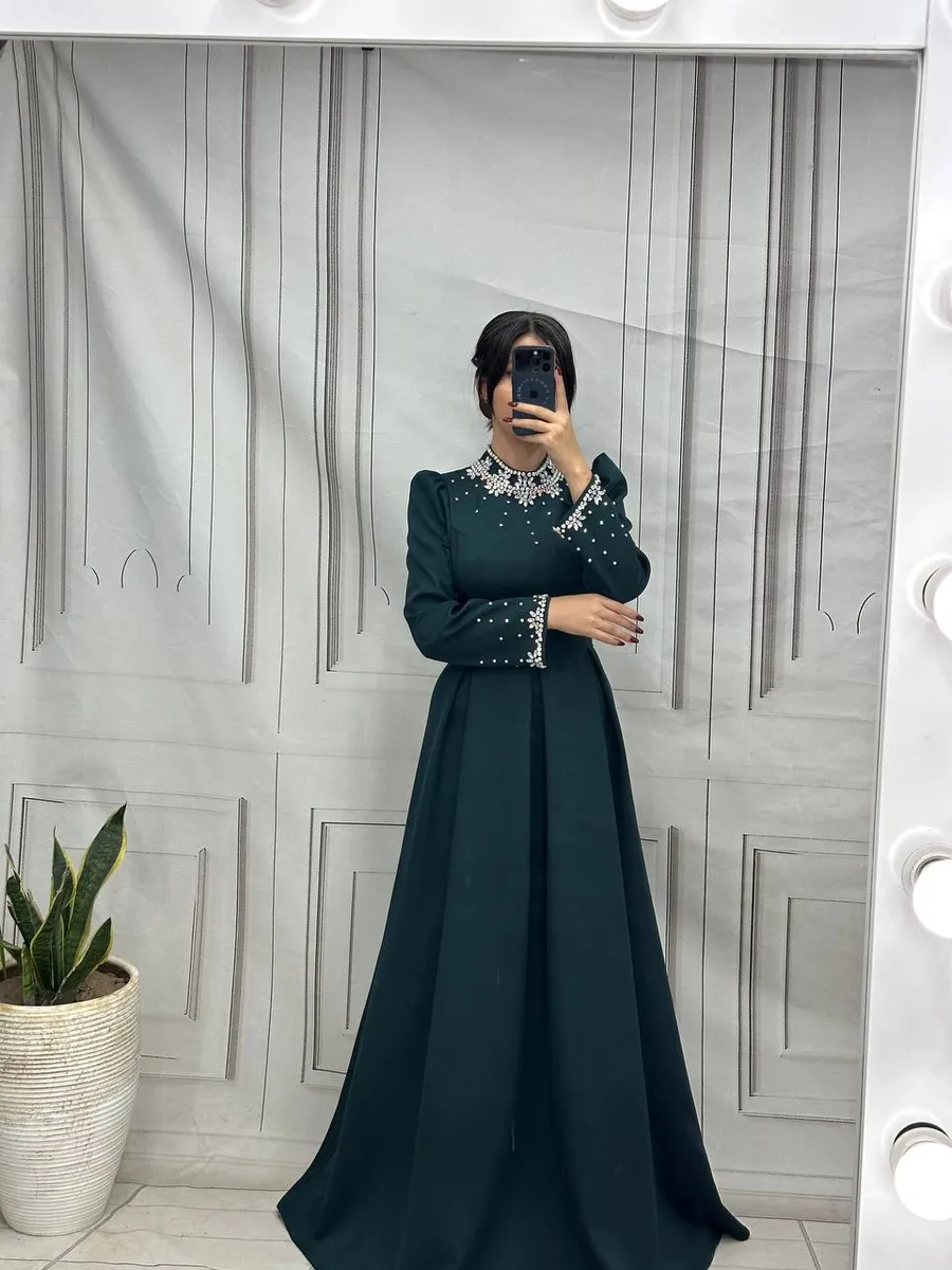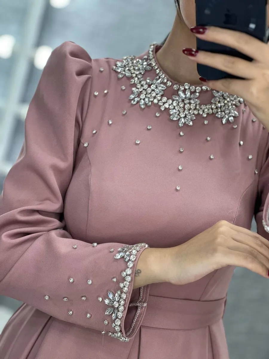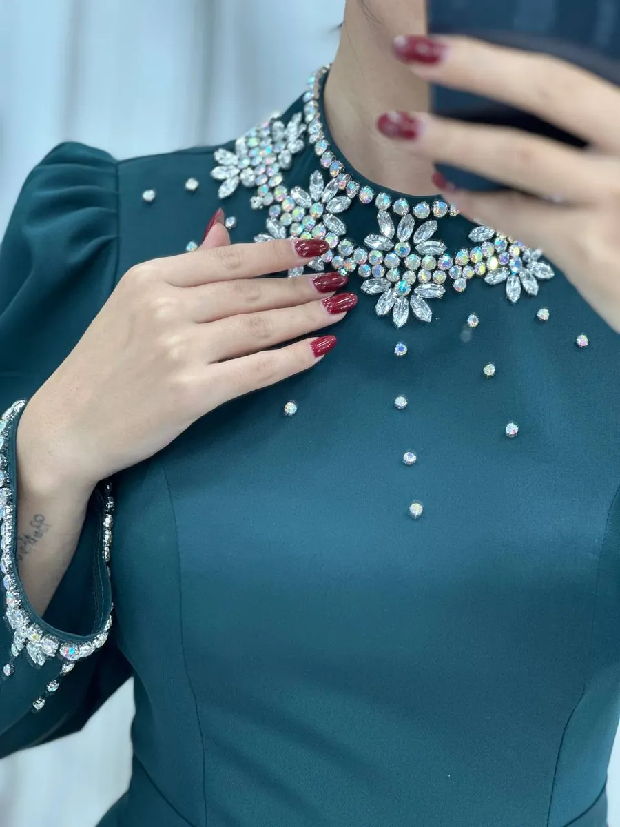 - **مدل:** لباس مجلسی بلند پوشیده، آستینبلند و کار شده
