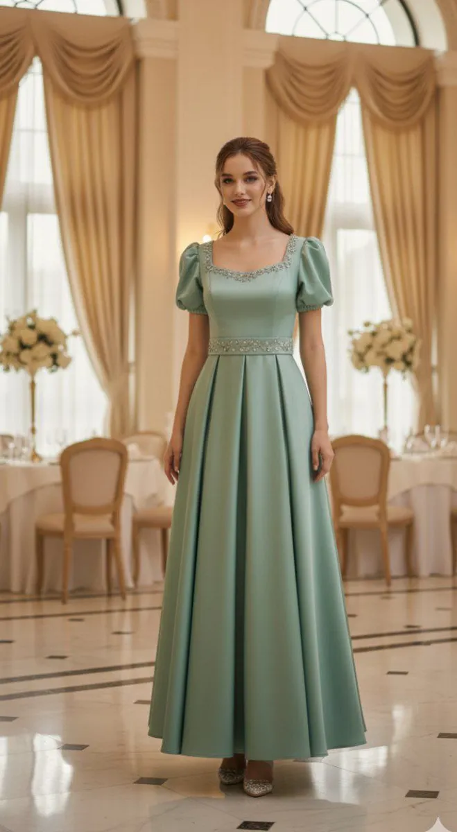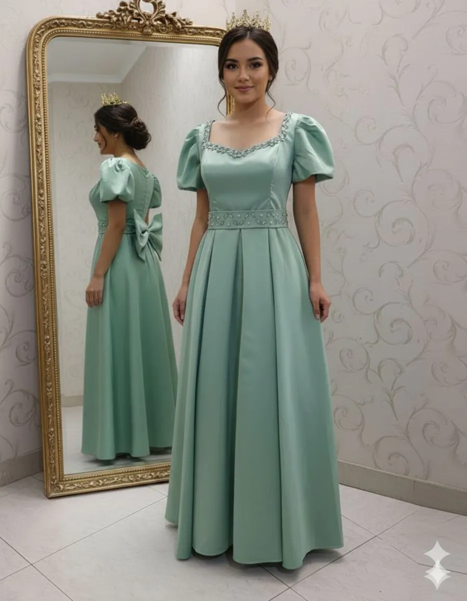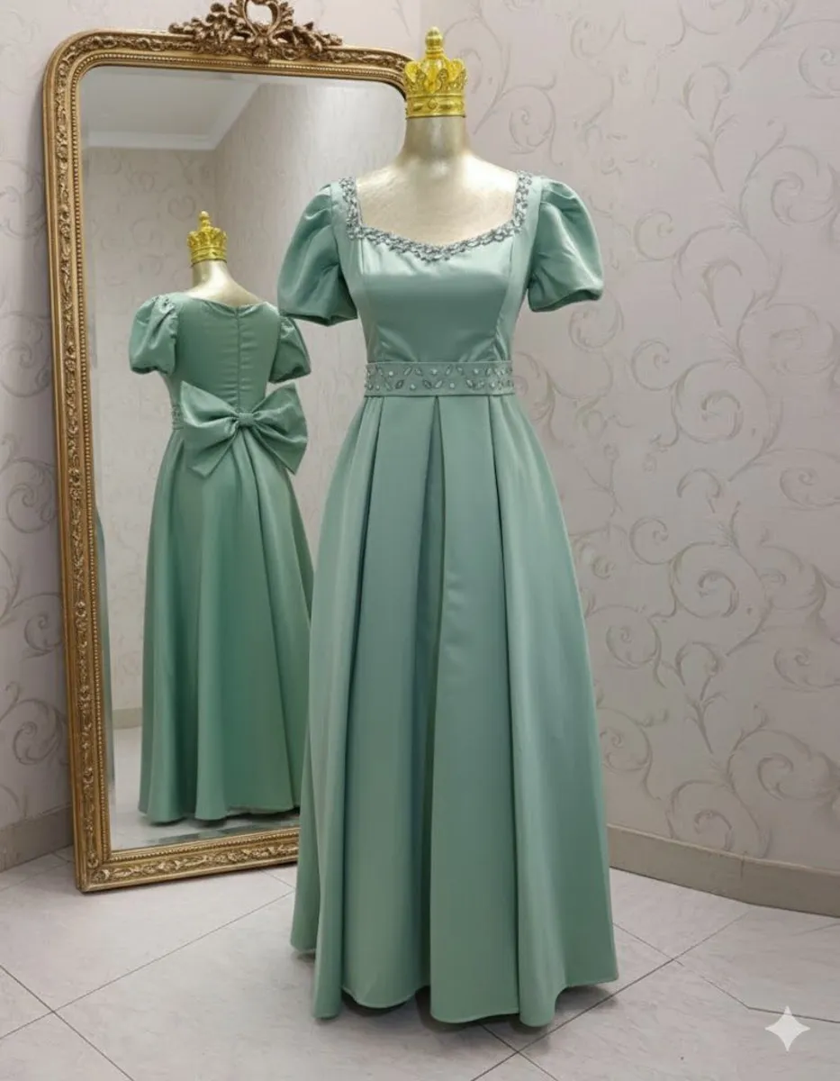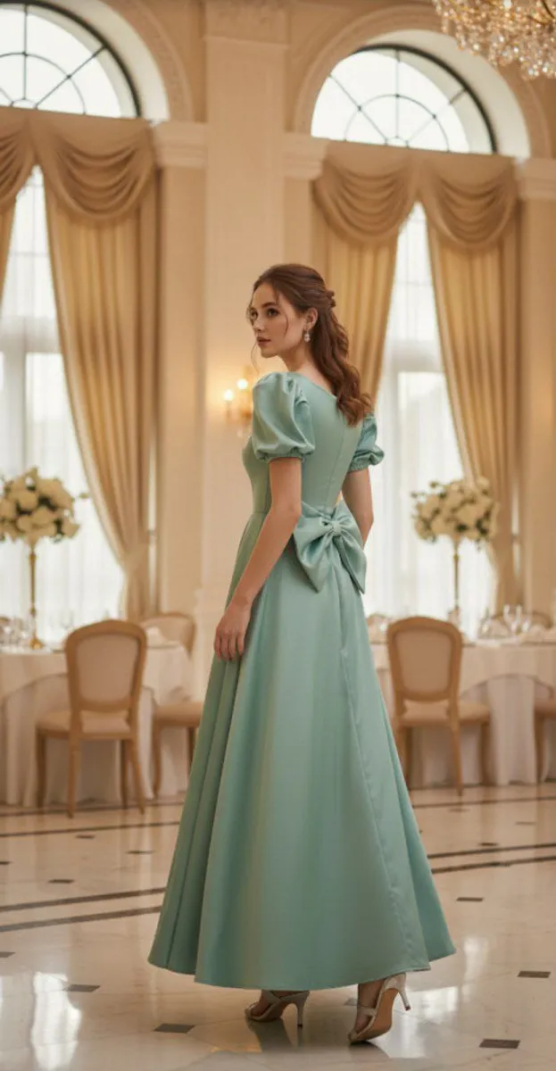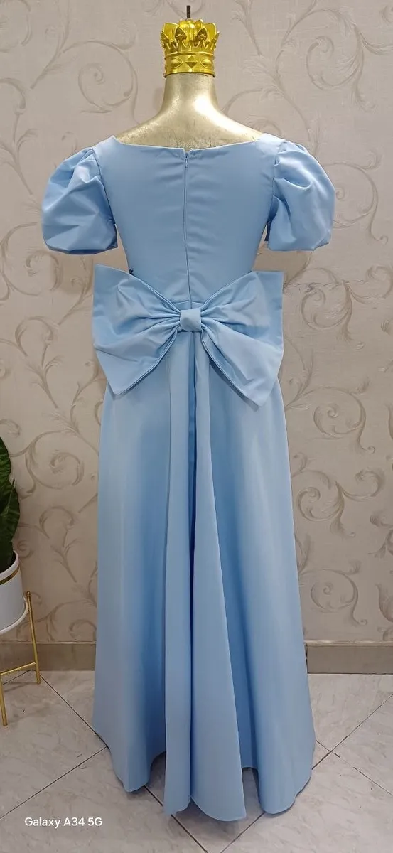 این مدل بهدلیل درخشش نرم ساتن، فرم شیک دامن و پاپیون پشت، پیشنهاد ویژهای برای مهمانیها، جشنها و استایلهای پرنسسی است.