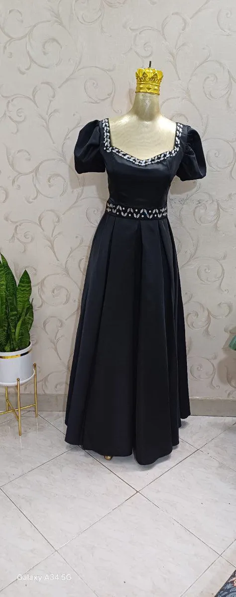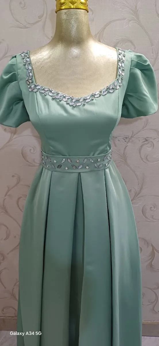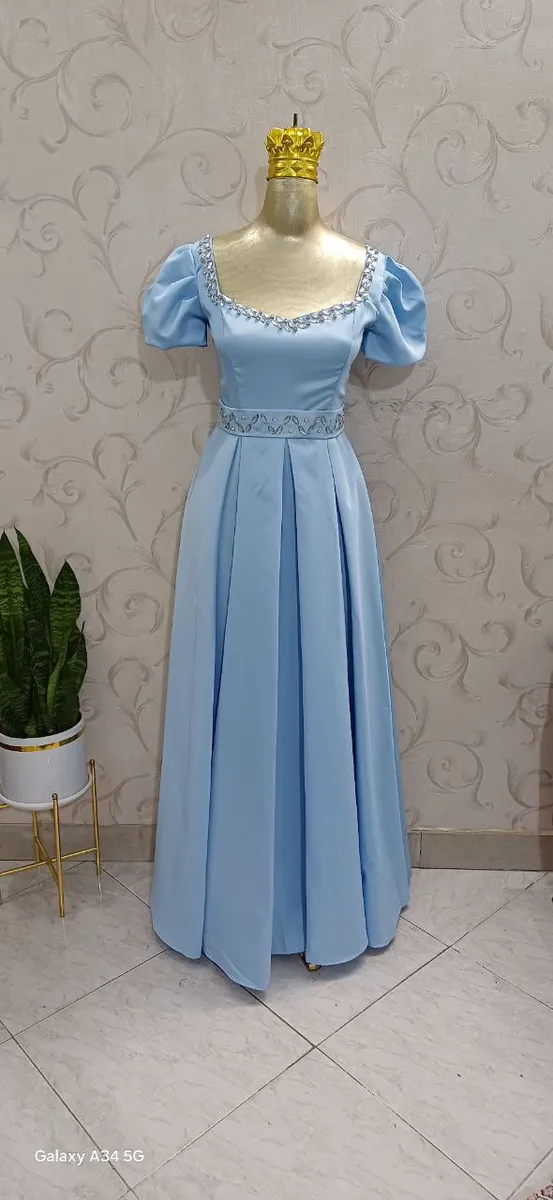این لباس از ساتن آمریکایی درجهیک دوخته شده و دارای سنگدوزی دستدوز ظریف در بالاتنه است که درخشندگی و شکوه لباسی پرنسسی به آن میدهد.