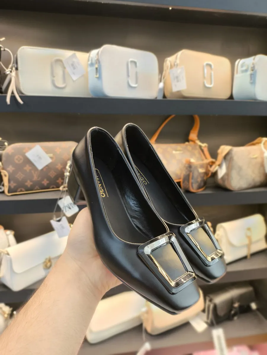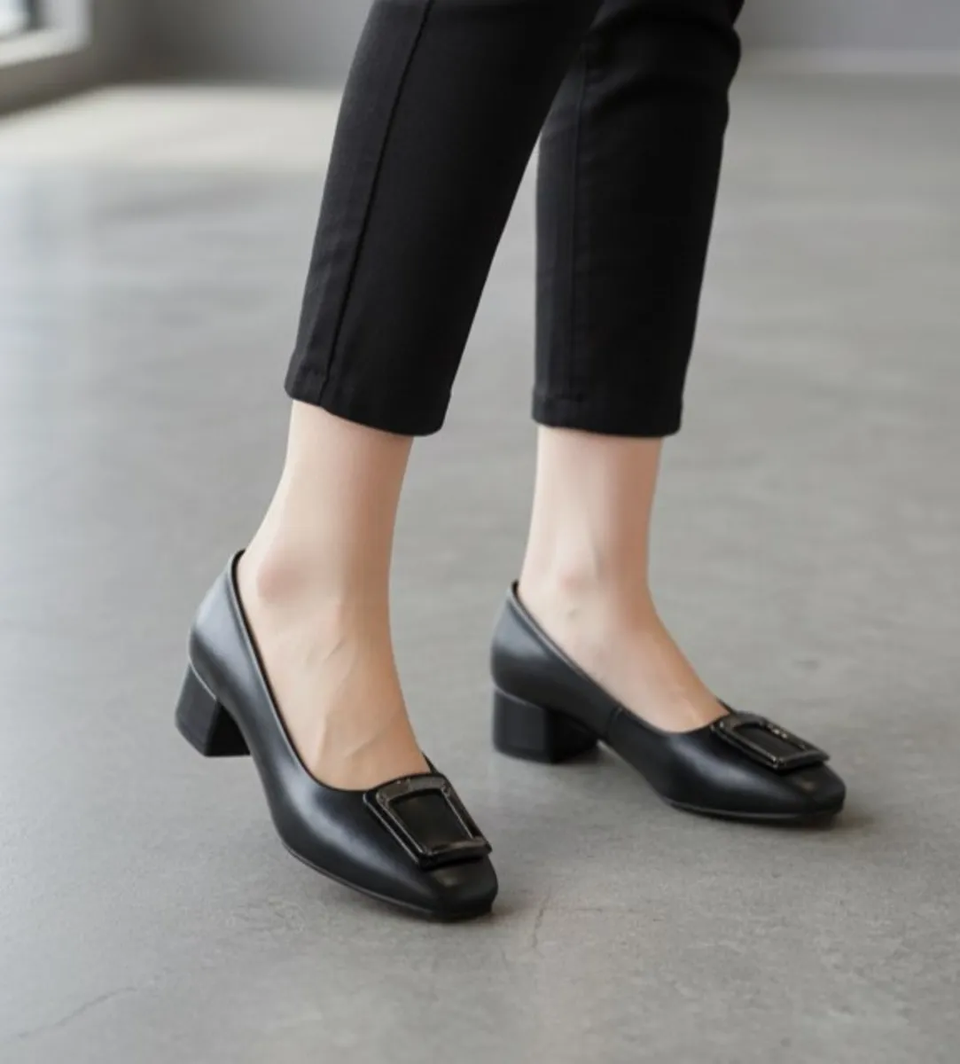 این کفش مجلسی مشکی با پاشنه کوتاه، ترکیب کاملی از راحتی و استایل لوکس مزونی است که هم برای محیطهای کاری و هم مراسم شبانه کاملاً مناسب میباشد.