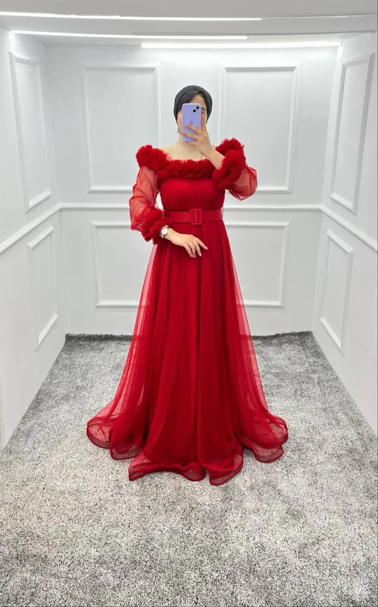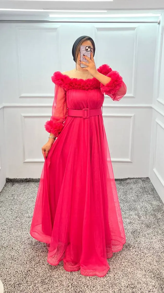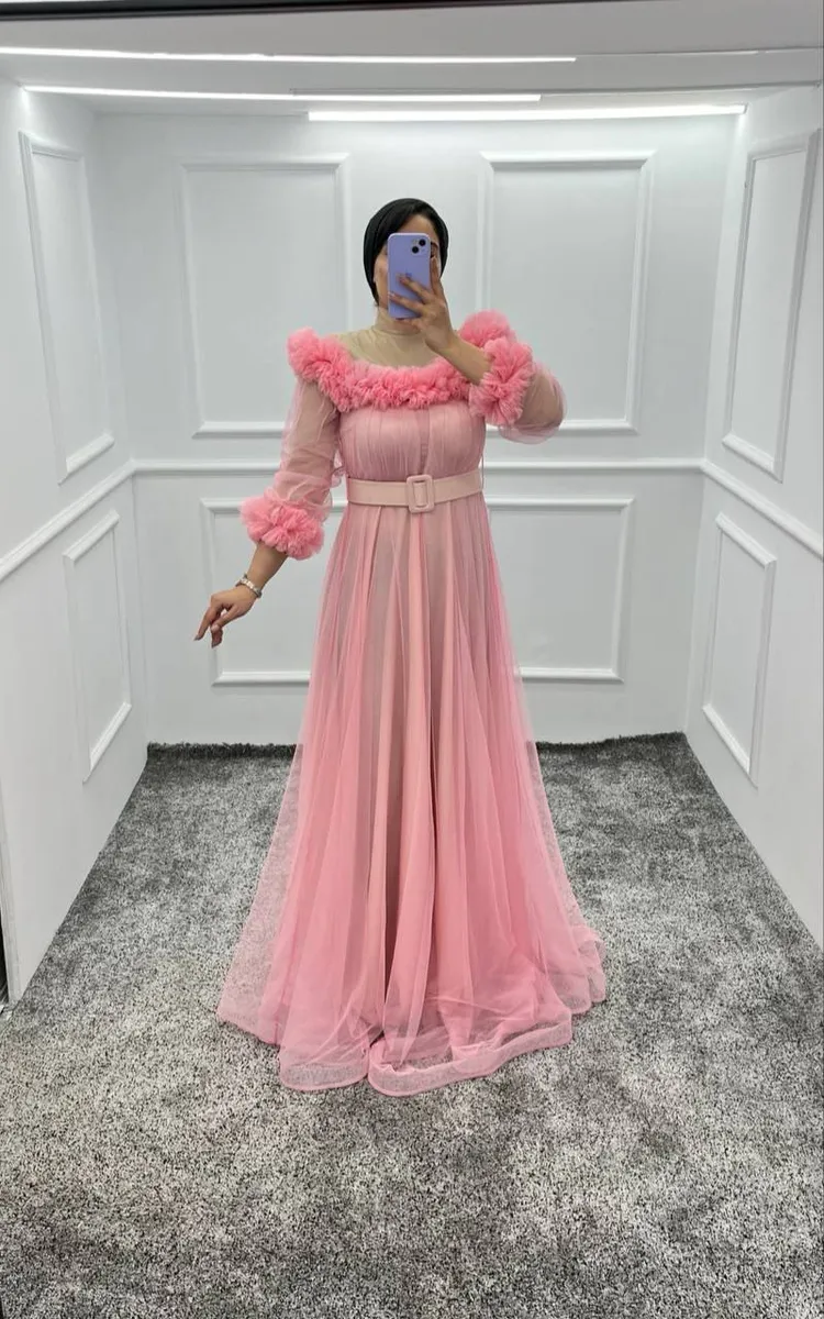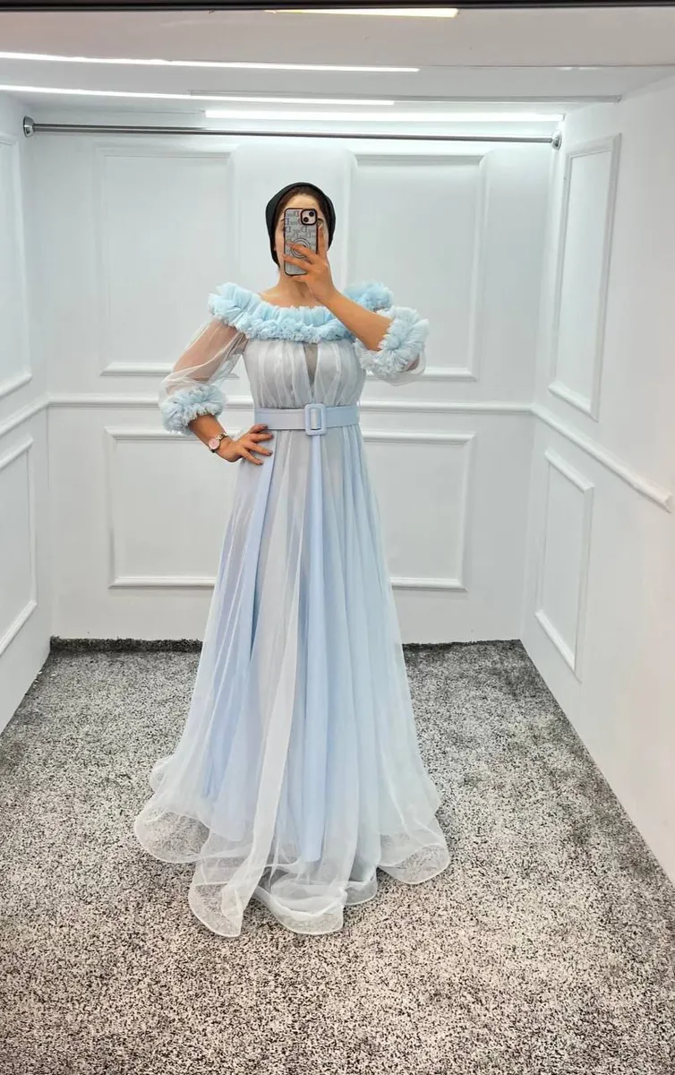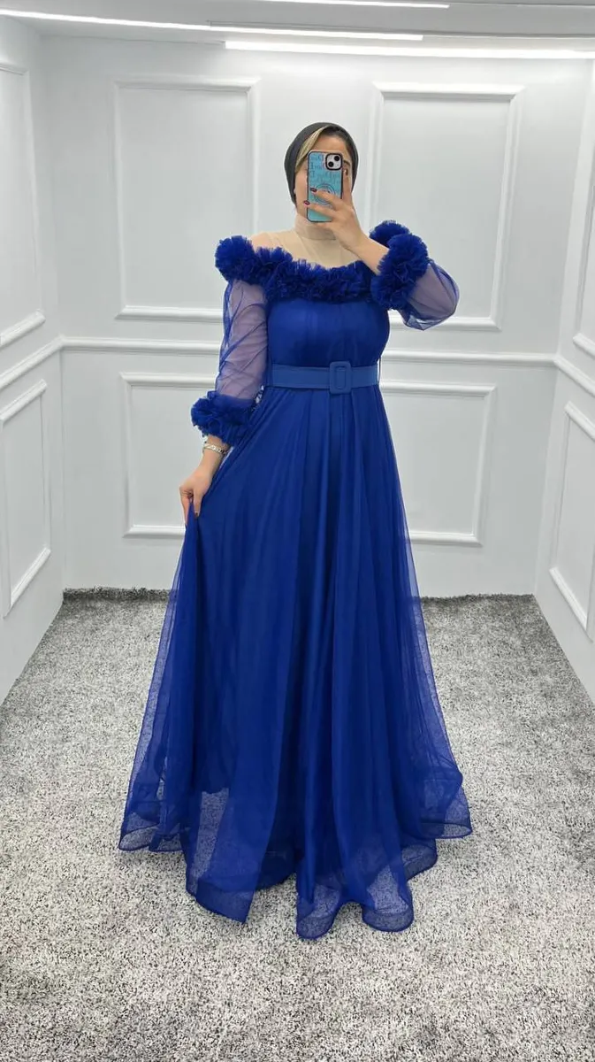لباس مجلسی تیفانی جدید کد 2 تور کش با کمربند مزونی**