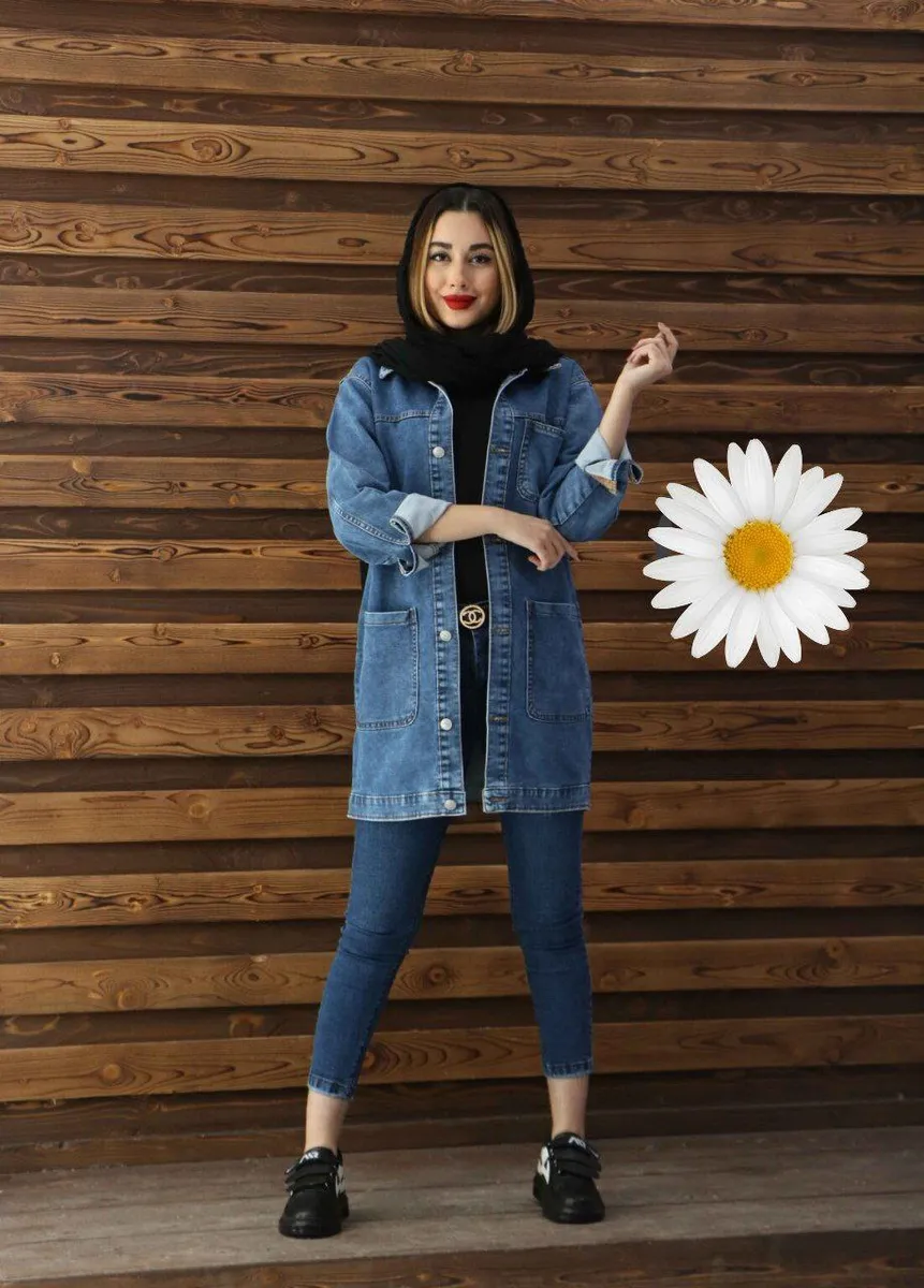 مدل **تمنا** از کالکشن جدید مودینو، یک مانتو جین کتی بلند و ضخیم است که با فرم فیت و پارچهی **لی ضخیم با کیفیت عالی**، استایل پاییزه شیک و مقاوم را برای روزهای سرد به نمایش میگذارد.