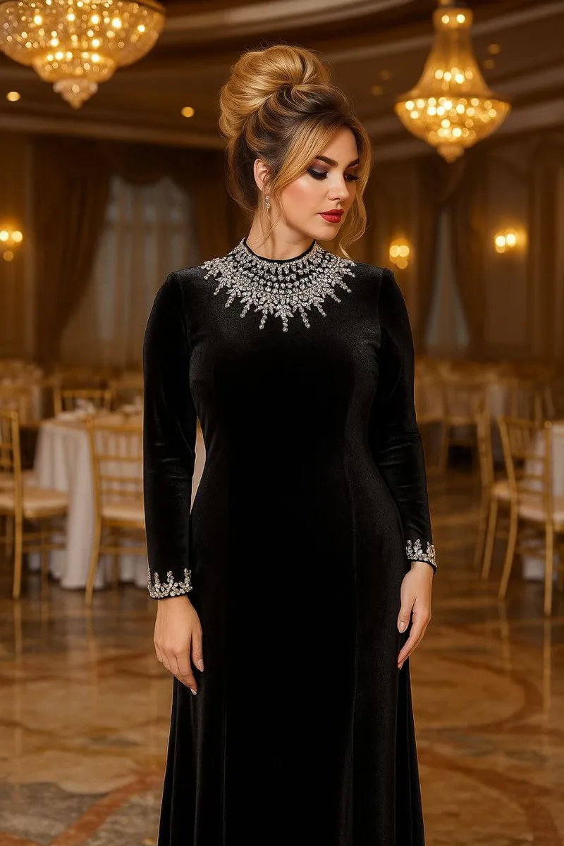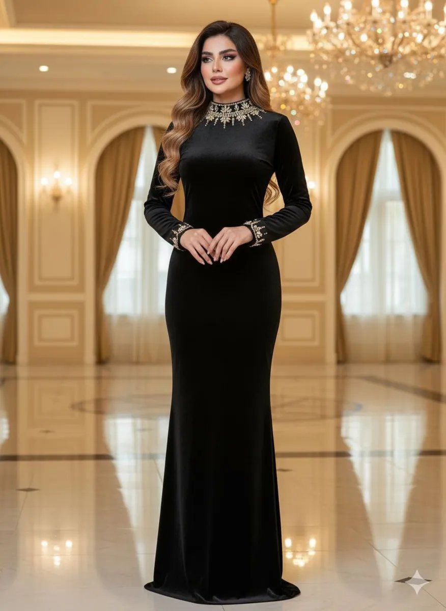✅ **مخمل درجه یک | سنگدوزی کار دست مزونی | فرم ماکسی بلند و فاخر | ارسال فوری و رایگان**